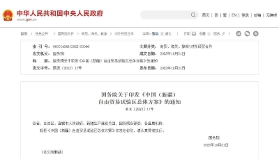 香江觀察 | 新疆自由貿易試驗區的三個關鍵詞香港新聞網11月1日電(文/一林)國務院周二(10月31日)公布的《中國(新疆)自由貿易試驗區總體方案》(以下簡稱《方案》)稱,要努力將新疆自貿試驗區打造成為促進中西部地區高質量發展的示範樣板,構建新疆融入國內國際雙循環的重要樞紐。 梳理這份數千字的《方案》,由三個關鍵詞和一條主線構成,就是圍繞“一帶一路”這條主線,使新疆成為自主的、開放的、有特色的自貿區。 關鍵詞一:自主 此次國務院頒布的《方案》無疑是中國政府的重大戰略布局的再次推進。地處亞洲腹地的新疆,自古就是絲綢之路上連接東西方的重要樞紐。從古時的陸路通道,到如今的立體化交通網絡,隨著中國擴大高水平對外開放、西部大開發、共建“一帶一路”等方面建設的深入推進,新疆從相對封閉的內陸變成對外開放的前沿,正在努力推進絲綢之路經濟帶核心區建設。 《方案》開宗明義提出,賦予新疆自貿試驗區更大改革自主權,充分發揮新疆“五口通八國、一路連歐亞”的區位優勢,深入開展差別化探索,培育壯大新疆特色優勢產業。經過三至五年改革探索,努力建成營商環境優良、投資貿易便利、優勢產業集聚、要素資源共享、管理協同高效、輻射帶動作用突出的高標準高質量自由貿易園區。
