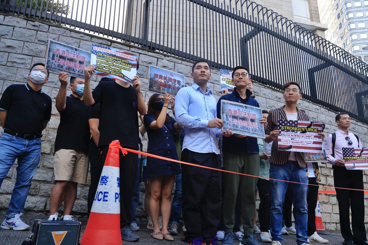 香港市民在美國駐港總領事館前譴責美國國會跨黨派議員提出法案