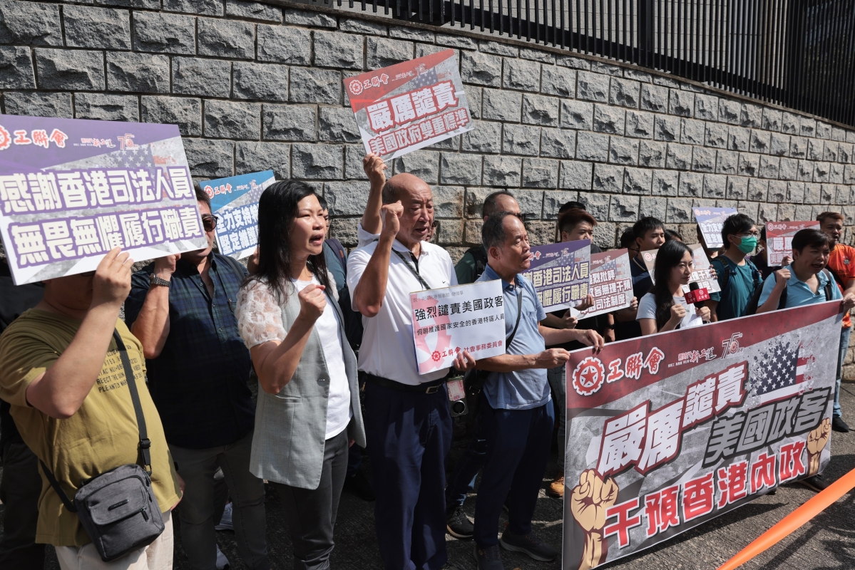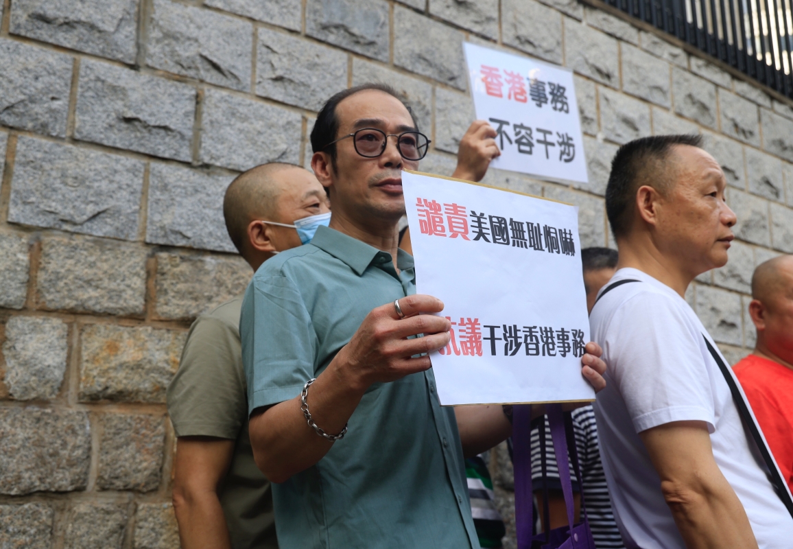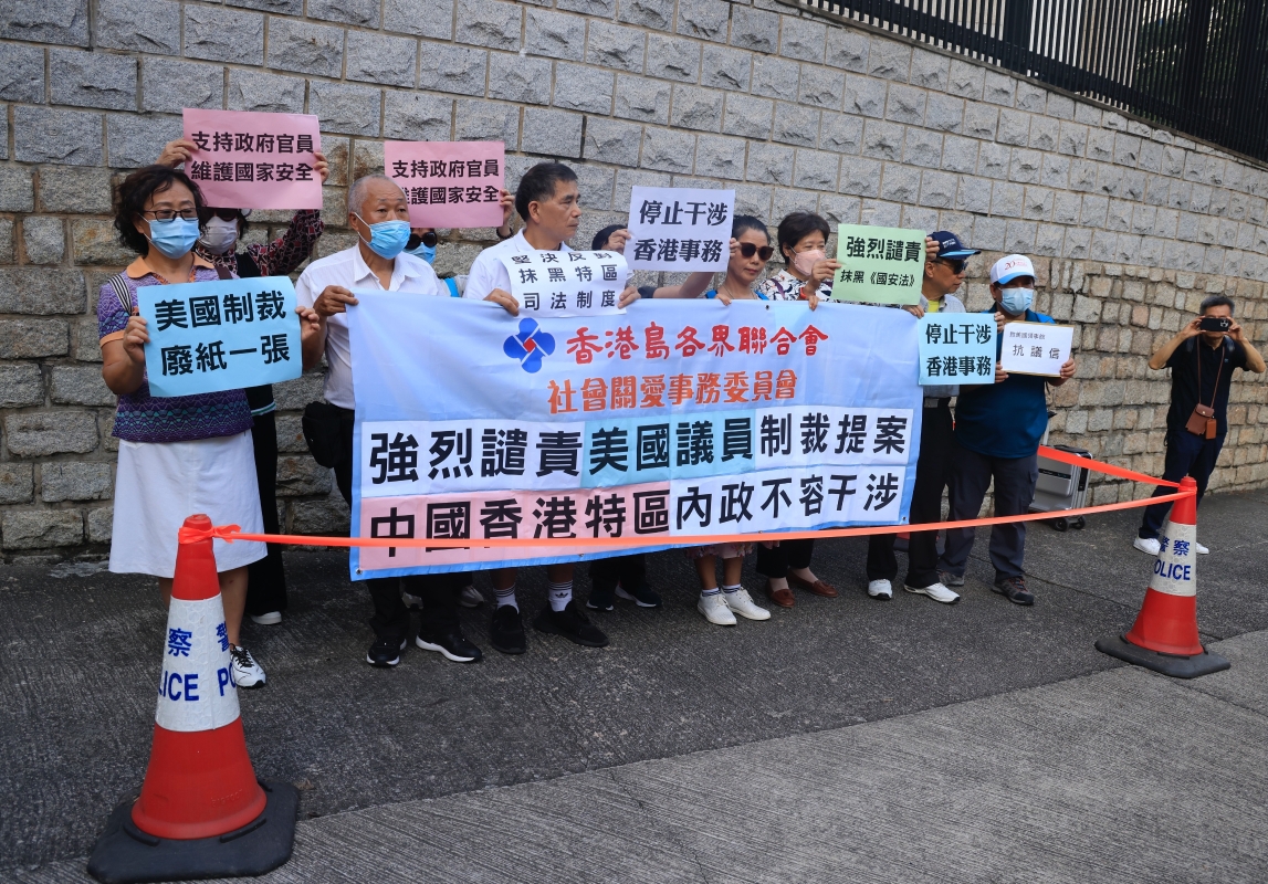 香港特首李家超4日出發赴上海出席進博會前表示,予以最嚴厲譴責。 李家超批評美國此舉是卑劣手段,這些行為的目的明顯是想恐嚇法官、檢控官和香港官員,特別是恐嚇法官,是嘗試去影響公平、公正審訊案件及裁決。李家超直斥嚴重妨礙司法公正,并稱這些妨礙司法公正的行為,除了違反法治,也違反美國自稱的司法獨立。 香港保安局長鄧炳強亦直斥,美國政客為自身利益,圖謀保護他們在香港的“走狗”,從而恐嚇香港司法,行徑有如黑社會。 由昨日(11月5日)開始,香港大批市民和團體絡繹不絕前往美國駐港澳總領事館拉橫幅、抗議。他們來自香港各區、從事不同行業,有耄耋老人,也有青年人。 “香港事務,不容干涉!” “譴責美國無恥恫嚇,抗議干涉香港事務”