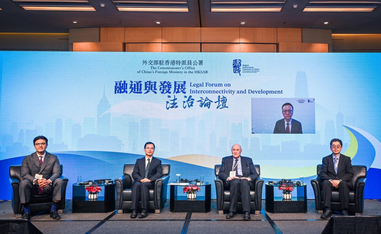 圖示(左起)香港大律師公會副主席毛樂禮資深大律師、海牙國際私法會議亞太地區辦事處代表及香港大學法律學院副院長趙雲教授、亞洲國際法律研究院聯席主席梁定邦博士、中國政法大學錢端升講座教授及教育部長江學者特聘教授霍政欣教授(屏幕)和律政司國際法律專員丁國榮博士 中國政法大學錢端升講座教授霍政欣就建議,中國應加強涉外法治建設,提高運用法治手段維護國家安全和特區穩定的能力。 律政司司長林定國致閉幕辭時就強調,香港特別行政區作為中國不可分割的一部分,堅決維護全球法治,以法律手段維護發展利益。在“一國兩制”的原則下,香港特區開放獨立的司法制度和豐富資深的法律專業人才,讓香港成為連接內地與世界各地的“超級聯繫人”,提供理想的法治營商環境。(完) 【編輯:孟宜君】