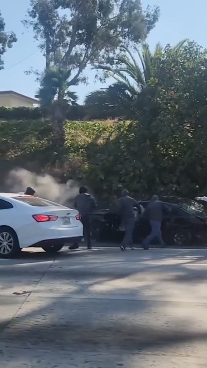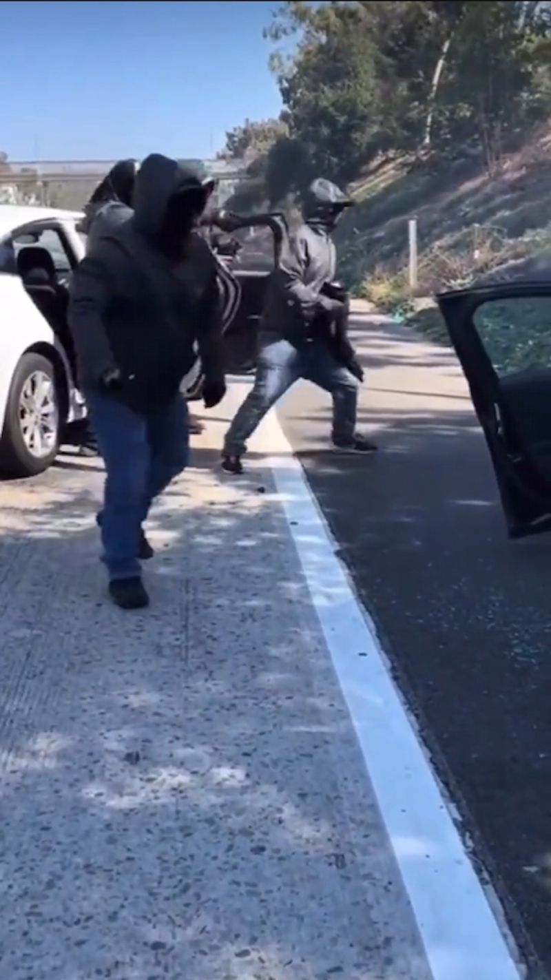 香港新聞網11月9日電 美國加州近年劫案頻生,網上近日流傳影片,顯示一名亞裔人士在當地一條公路上遭人打劫,當地警方指,受害人為來自香港的珠寶商人。香港入境處表示,至今未接獲相關港人求助。 據外媒報道,事發於10月24日下午約1時30分,劫匪駕駛一輛小型貨車,在公路故意撞停受害人的私家車,4名身穿深色連帽衫的蒙面劫匪從貨車中衝出,打開私家車車門及車尾箱進行搜掠,其後換乘另一輛白色車逃逸。劫掠過程中,一名亞裔面孔的男子在馬路旁跪地並高舉雙手。