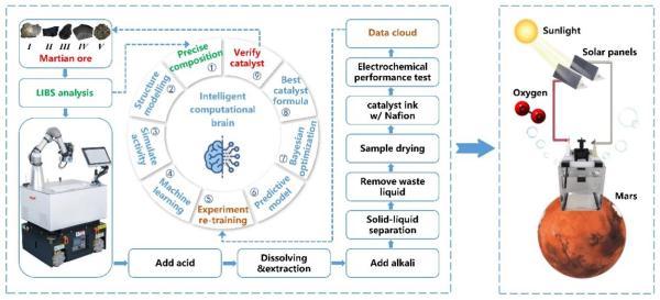 香港新聞網11月14日電 火星作為地球的“鄰居”,已成為當前太陽系探測和行星科學的焦點。人類要想到火星開發資源或移居火星,首先要克服的是缺乏氧氣的火星環境。近日,中國科學技術大學與深空探測實驗室研究團隊合作,通過人工智能驅動機器人實驗,利用火星隕石成功創製出實用的產氧電催化劑,為未來火星探測和地外文明探索提供了新的技術手段,這一成果今天(14日)在國際期刊《自然·合成》上發表。