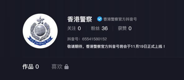 香港警察抖音賬號 圖源:抖音截圖 警務處預告,19日開通的抖音官方帳號將由警務處處長蕭澤頤帶領不同崗位同事拍攝的短片揭開序幕。 香港警察抖音官方帳號,是警隊新增的第九個社交媒體官方帳號,其他社交媒體包括Facebook(臉書)、WhatsApp(即時通訊應用程式)、小紅書、微信及微博等。 隨着短視頻平台興起,警隊希望透過抖音平台,以創意短視頻形式,將實用及多元化資訊傳遞給觀眾,加深他們對警隊的了解及支持。(完) 【編輯:彭玉婷】