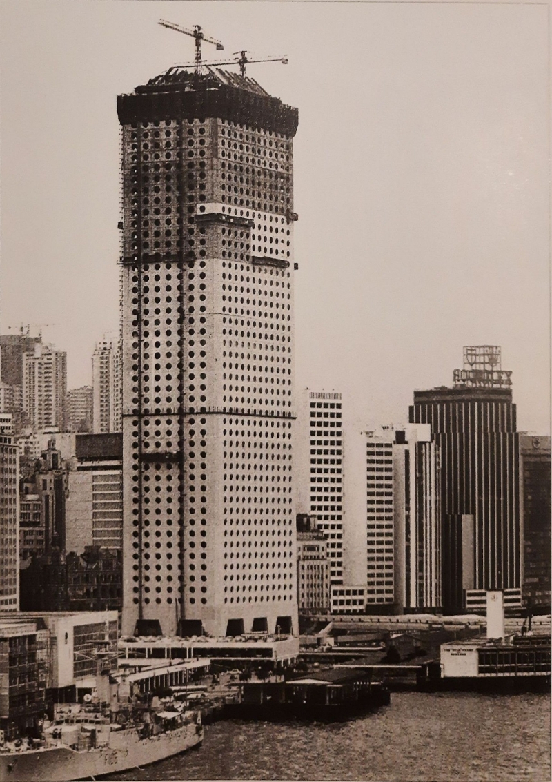 第二期中環填海工程,興建中的文華酒店(現名為文華東方酒店),約1962年。(圖片:地政總署) 1970年代香港經濟騰飛,1971年10月7日怡和大廈開始動工興建,1973年4月落成,成為香港首幢樓高52層的摩天大廈。它刷新的建築紀錄還包括:擁有當時亞洲最快的電梯、最大的空調冷水機組及標誌性的1,748扇圓形玻璃窗;同時,為滿足加快資金回籠最具成本效益的目標,由動工至平頂只用了1,000天,其建築速度亦是當時的一項紀錄。