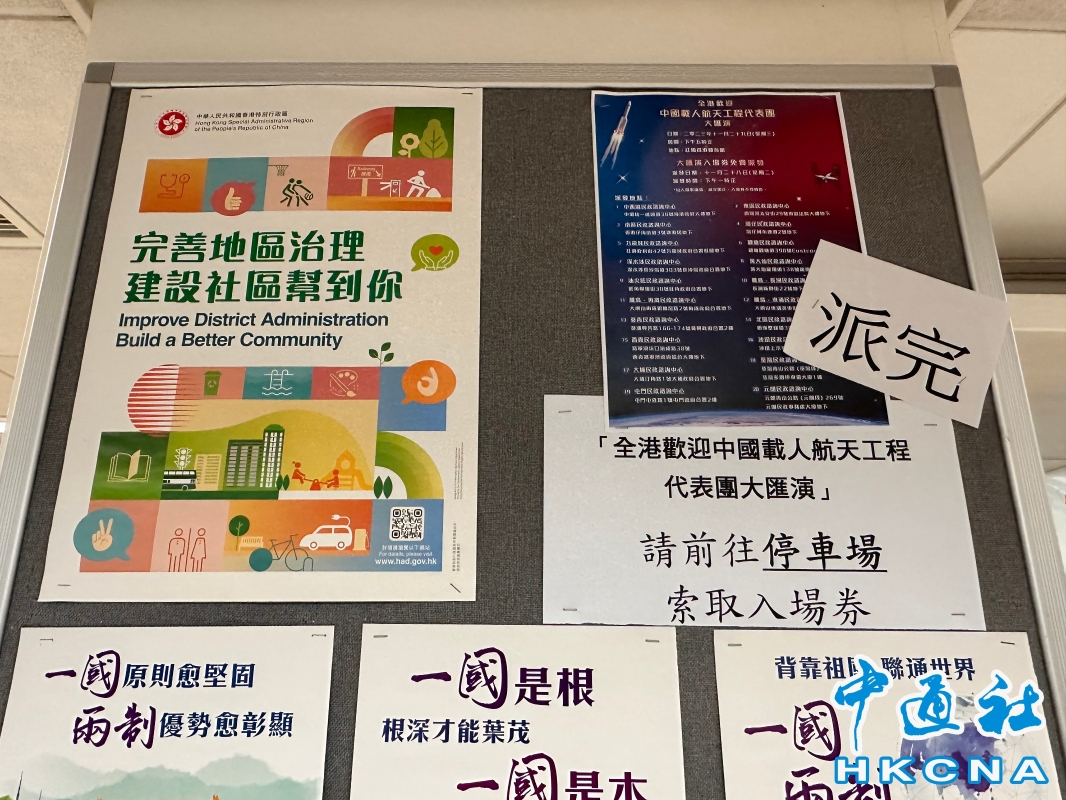所有門票即日派罄。 (香港中通社記者 曹文毓攝) 代表團將於今日與中、小學生展開對話,隨後出席紅磡香港體育館舉行的“全港歡迎中國載人航天工程代表團大匯演”。大匯演免費門票昨天在各區民政諮詢中心派發,吸引大批市民輪候取票。由於市民反應相當熱烈,所有門票即日派罄,有部分中心更在不到15分鐘內已全數派完。有工作人員直呼,“市民熱情度很高!” 有取到門票的市民表示,接觸國家航天員的機會難得,希望帶兒子看匯演、長見識,以後做個對社會有貢獻的人。有未能取得門票的市民表示可惜,指希望日後香港特區政府能多舉辦類似活動。(完) 【編輯:孟宜君】