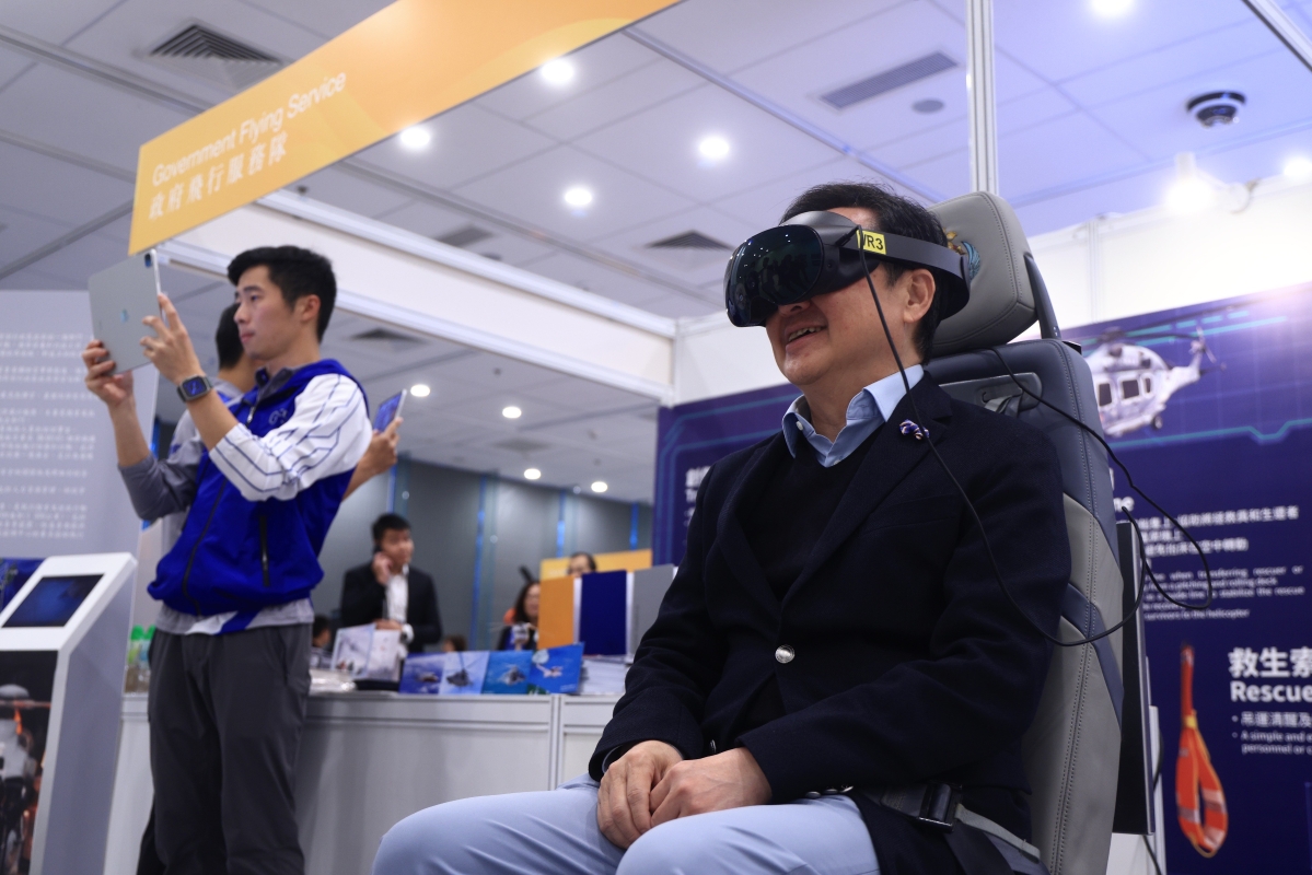 現場人士體驗政府飛行服務隊的VR裝置 【編輯:許其皓】