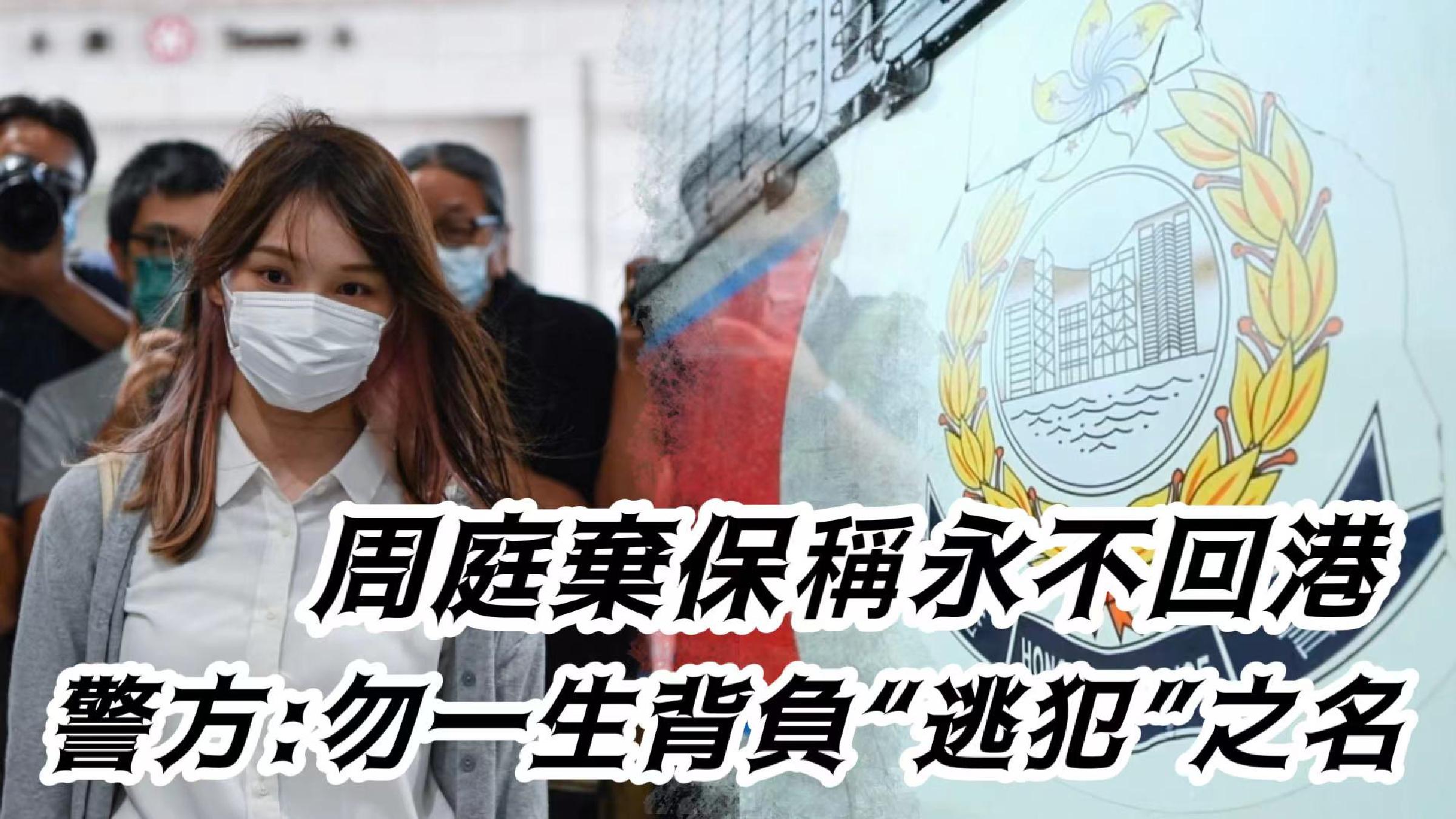 香港新聞網12月4日電 涉嫌違反香港國安法被捕的前“香港眾志”成員周庭,9月中旬離開香港赴加拿大多倫多升學。她昨晚(3日)在社交媒體發文,稱原定要於12月底回港向警方報到,但考慮到香港的形勢、自身安全、生理和心理健康,決定不會回港報到,“大概一輩子不會回去”。香港警方強烈譴責這些公然挑戰法紀的不負責行為,呼籲當事人懸崖勒馬,不要選擇走一條不歸的路,一生背負“逃犯”之名。