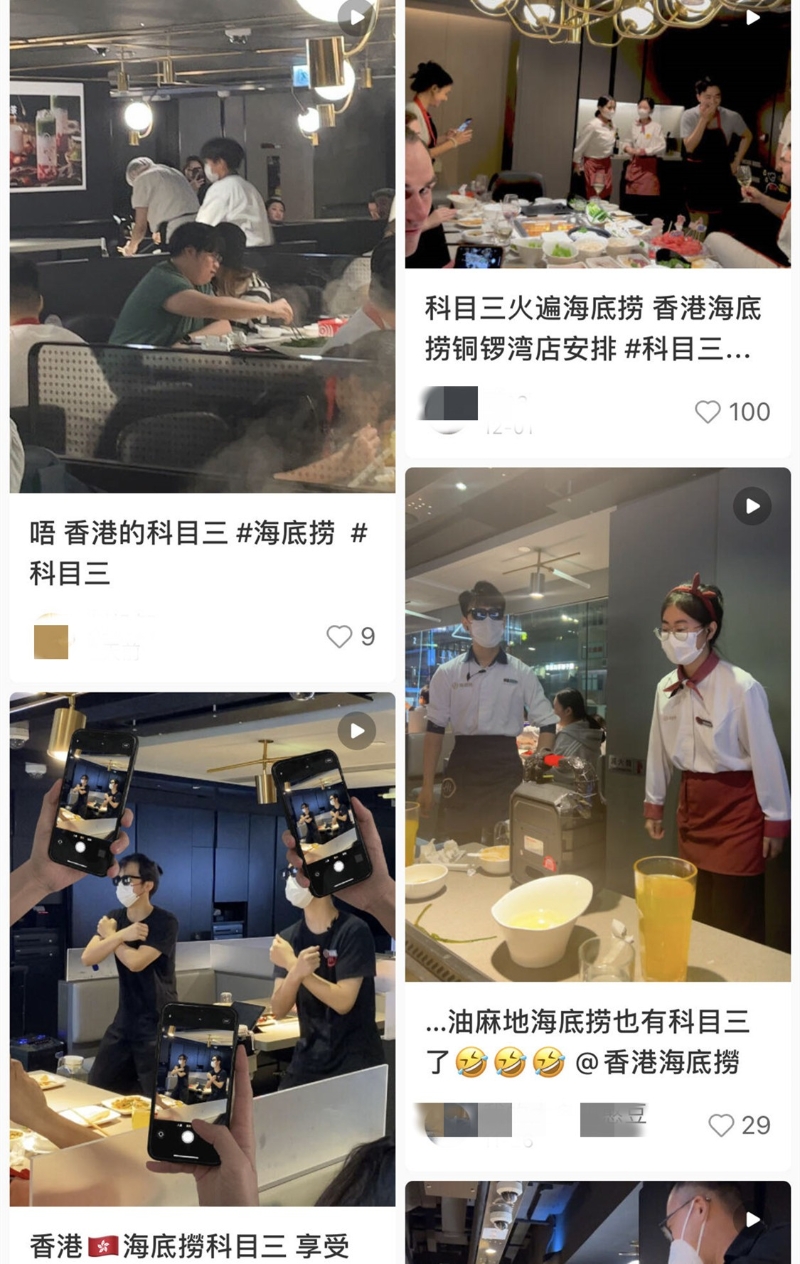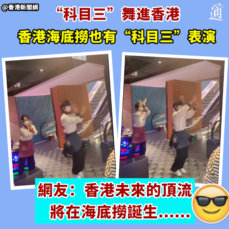 (小紅書截圖) “海底撈科目三的風還是吹到了香港,”有上傳短片的網友感嘆,“香港竟然也有科目三和擦玻璃可以看了”。也有網友介紹指,香港海底撈的員工透露說,“我們是第一個(批)客人在銅鑼灣海底撈點科目三!他們立即上網學,用了10分鐘立即排舞,立即跳給我朋友看幫他慶生……” “科目三”的風終究吹進了香港,不少港人看過影片後,在網絡留言稱讚跳得“好可愛”,更笑言“香港未來的頂流將在海底撈誕生。”