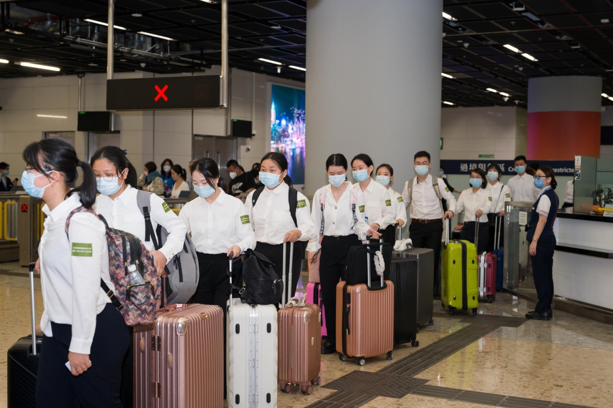 首架“澳車北上”車輛2023年1月1日凌晨順利駛入廣東 圖源:澳門政府網站 半年後的2023年7月1日零時,“港車北上”政策也正式實施。當日凌晨,一輛車牌號為LL7999的香港私家車通過查驗後駛入珠海,成為首輛進入廣東的香港單牌車。港澳車北上實施後,自駕人士可通過此計劃作短期商務、探親或旅遊,以進一步利用港珠澳大橋促進粵港澳大灣區的發展。 2、內地醫護來港交流 4月17日,是香港與內地醫療人才交流的重要里程碑,約80名來自內地的專業高水平和經驗豐富的醫護人員走出高鐵西九龍站,來到香港與醫護人員互相切磋學習,參與“大灣區醫療人才交流計劃”,在未來約一年內透過專業交流,冀提升灣區整體的醫療專業水平,造福病人。