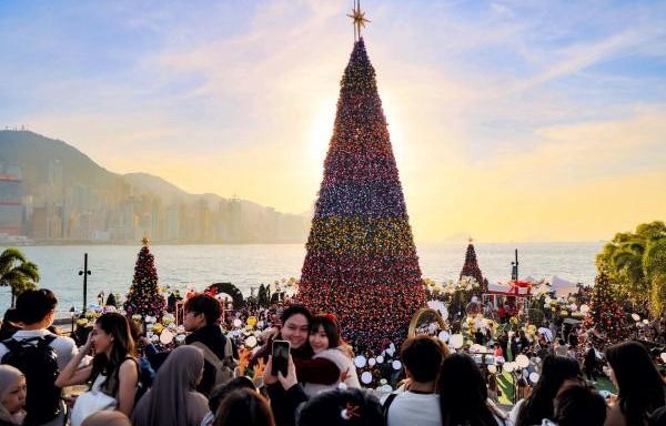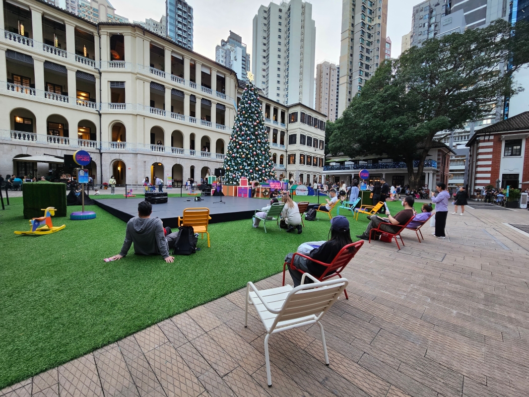 想感受聖誕的歡樂氣氛,不妨去歷史藝術地標“大館”聖誕樹打卡和看馬戲表演。(香港中通社記者 黃璇攝)