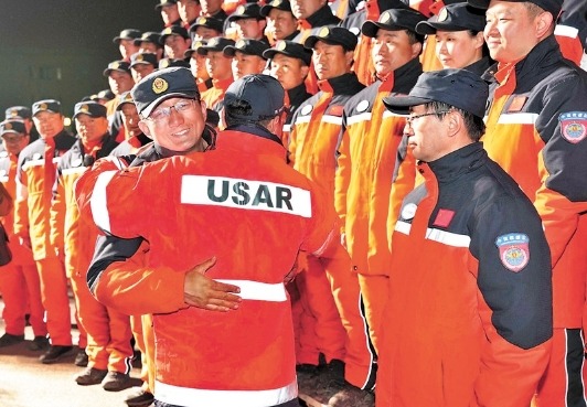 于文陽(中)。大會提供圖片 率領救援隊的消防處副消防總長于文陽今天領獎時表示,救援現場環境極為險惡,在重大自然災害面前成功救出生還者實屬不易。而最令他們感動的是,即使遭受重災,當地市民依然將自己所儲備的食物、飲用水等寶貴生命物資與救援隊分享。
