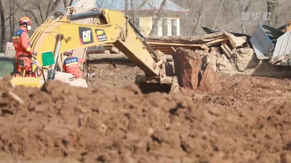 視頻截圖 據海東日報報道,19日5時左右,天空微明,記者看到該村不少房屋倒塌,部分房屋、畜舍遭到砂湧掩埋,給救援工作帶來了一定難度。雖然如此,消防等救援人員攜帶照明等設備及時進行搶險救援,甚至徒手扒開廢墟上的磚塊雜物,現場不斷有群眾被救出的消息傳來。 當日6時許,天色微亮,記者在救援現場看到,村口形成了砂湧,臨近的房屋大部分被埋。因為天氣寒冷,砂湧處於半凍結狀態,救援人員一邊用石塊、木柴等在砂湧中鋪出一條救生通道以便展開救援,一邊用挖掘機清理淤泥。