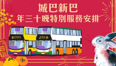 香園圍口岸自開通後一直備受市民歡迎,考慮到乘客需求持續上升,口岸於長假期間使用量高企,城巴B7X號線將於12月23日(星期六)至1月1日(星期一)間,每日提供特快服務,由上水站、不經粉嶺市中心直達香園圍口岸。由上水(新運路)開出的班次服務時間為上午10時10分至11時40分,全程車費為港幣10元正。由12月23日(星期六)起,城巴B8號線亦會加強周末服務,往返香園圍口岸與大圍站的班次,將加強至最密每10分鐘一班,方便市民及旅客。同時,通宵機場快線NA10號線將於12月23日(星期六)至1月2日(星期二)營運,接駁香港島南區至機場和港珠澳大橋香港口岸。 因應聖誔及新年各項慶祝活動,城巴將於除夕增設特別通宵路線接載顧客,亦會於密切留意顧客出行模式,按需要加強平安夜和除夕,中環、銅鑼灣和山頂一帶的巴士服務。 (完) 【編輯:陳偉根】