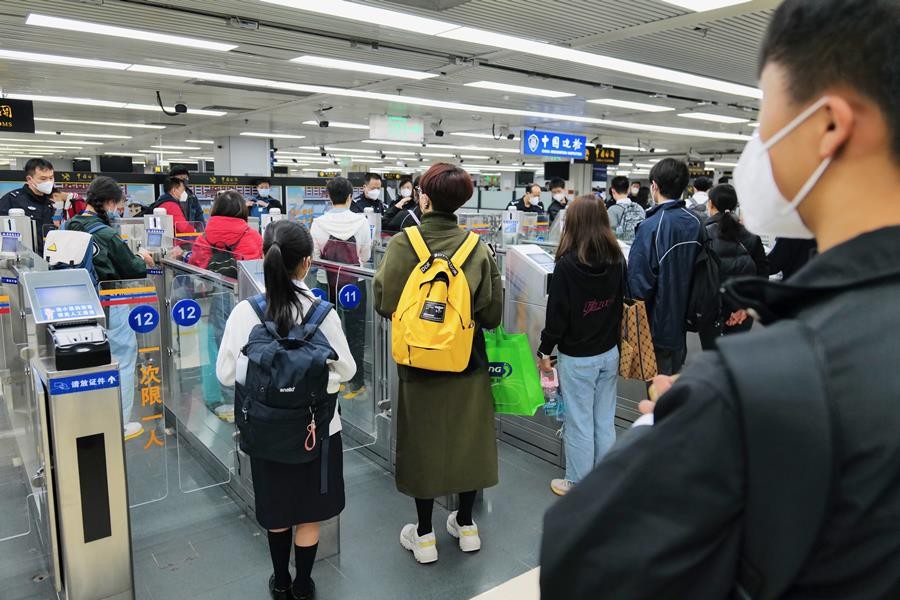 香港中通社12月23日電(記者 陳卓儀 陳偉根)12月23日,香港聖誕假期(12月23日至26日)首日,大批香港人北上內地,各大陸路口岸迎來出境高峰。 記者在現場了解到,很多旅客是想坐高鐵去廣東省以外的城市遊玩,也有一些市民帶著老人孩子,打算趁著聖誕假期回廣東老家探親。 在福田口岸、羅湖口岸、深圳灣口岸等,現場也是人潮洶湧。落馬洲和羅湖的地鐵出站閘口一度出現擁堵。邊防查驗櫃枱前也是人擠人,大排長龍。
