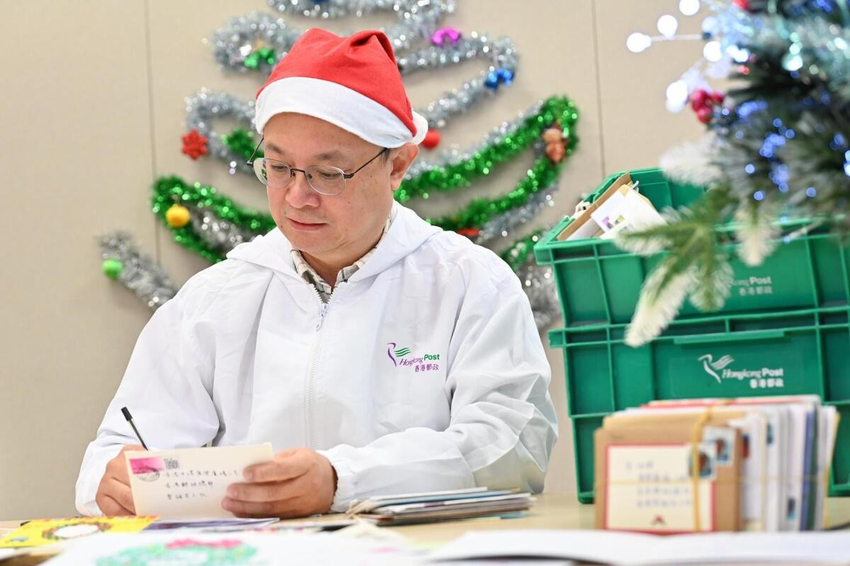 劉嘉紹。香港政府新聞網圖片 郵務主任劉嘉紹以聖誕老人身分回信超過十年,見過無數聖誕願望,這些年來,最多小朋友想收到的聖誕禮物離不開玩具和電子產品,而早前疫情肆虐,較多來信希望家人身體健康,也有小朋友許願世界和平。 回信費時又費心,為讓寄件人適時收到回覆,郵政人員可能要每日處理數百回信,不過劉嘉紹形容這是開心事,每年都期待年底這段時間來臨。 分享喜悅 送上祝福 除了聖誕願望和禮物,不少人也會在給聖誕老人的信中分享生活大小事。 郵務員郭頌羚去年開始執筆回信,今年再次為聖誕老人代筆。她表示,曾收到小女孩來信,分享即將當姊姊的喜悅,“可以代聖誕老人回信,與來信者特別是小朋友交流,非常有趣。”