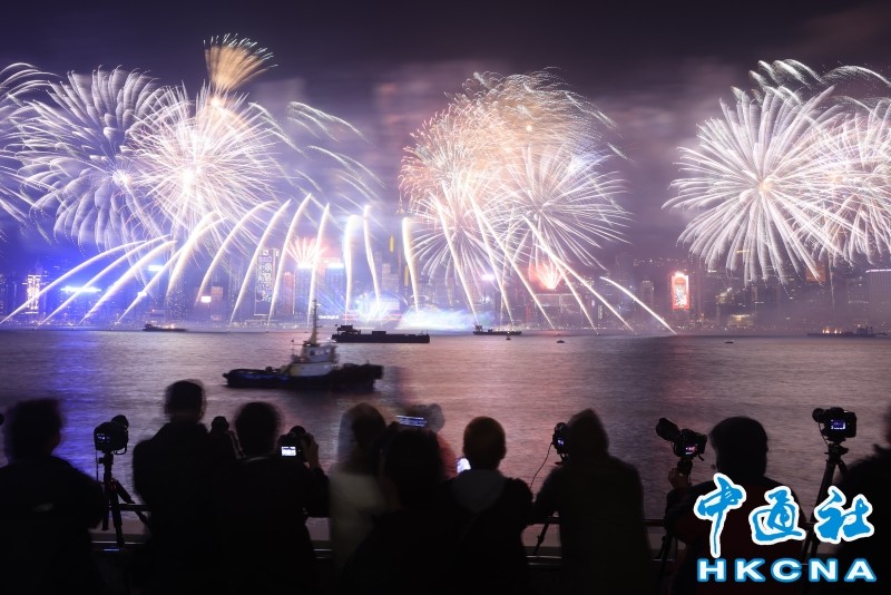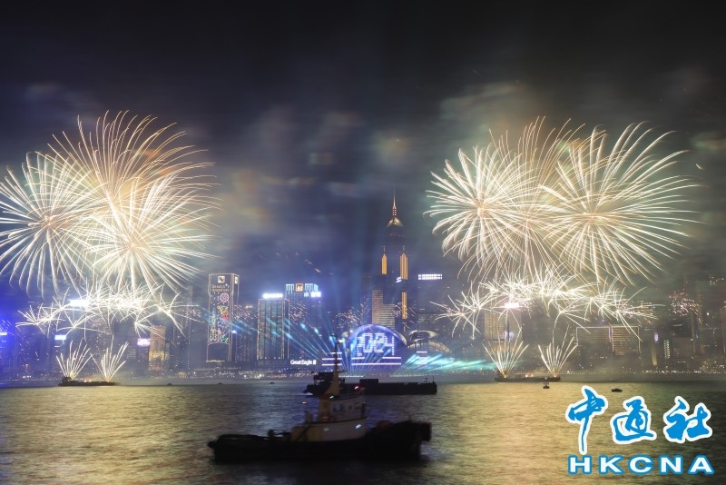 (香港中通社圖片) 2023年12月31日,香港舉辦史上最大規模的跨年倒數煙花匯演。當日,維港兩岸近48萬名市民和旅客一同出來欣賞煙花,旅客數目單日計達27萬,是2023年中以單日計最高。