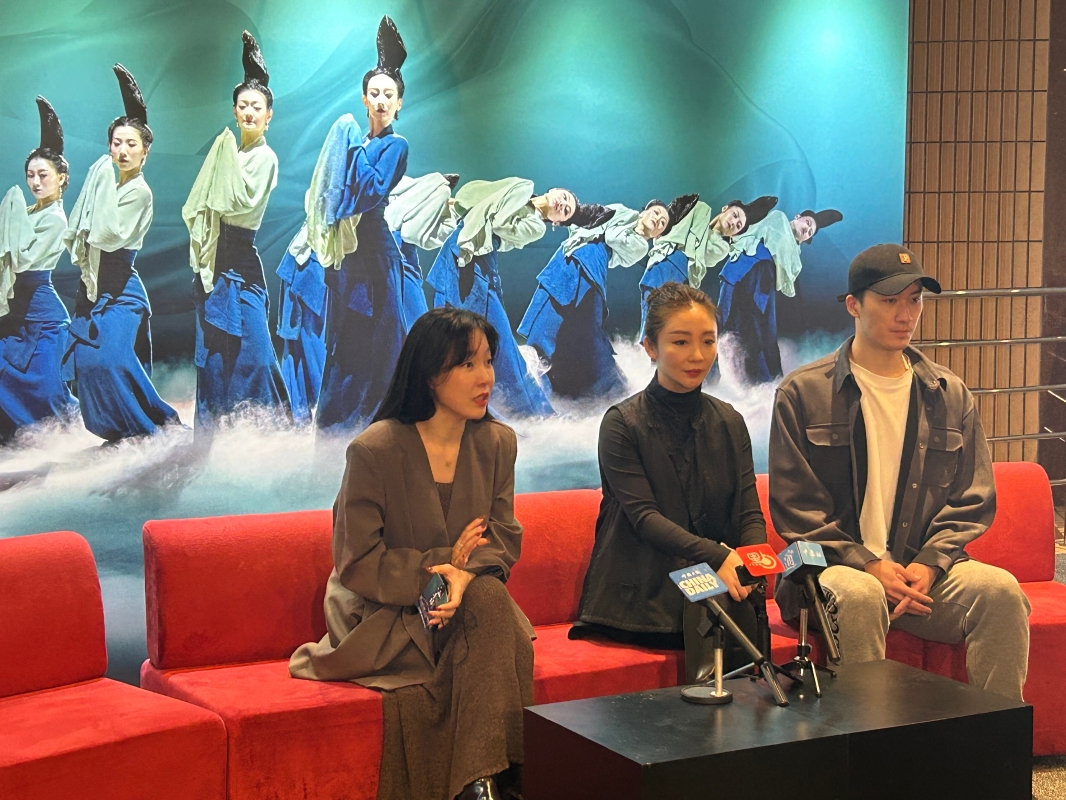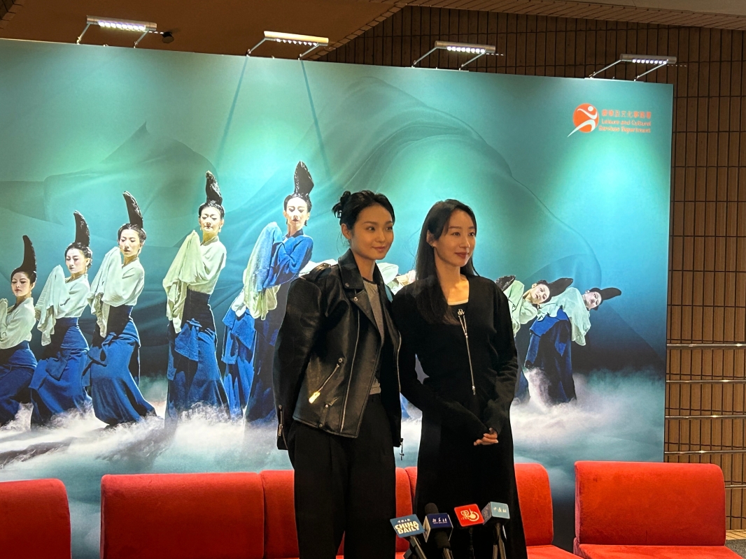 香港中通社記者 徐嘉儀攝 在劇中飾演青綠的舞者孟慶暘和袁嘉螢認為,是文化的力量,讓那麼多人熱愛這個作品。“打開青綠的大門是無邊無際的,每次演出都有不一樣的感覺。香港是中西文化交融之地,我們希望以舞蹈的形式,將宋代文化審美、傳統文化傳遞給香港觀眾。” 採訪前,主創團在文化中心舉辦舞蹈大師班,與香港舞蹈愛好者近距離交流,現場教授“青綠腰”等舞蹈動作。 飾演畫家希孟的舞者張翰直言“感受到香港市民對舞蹈的熱情,對傳統文化的渴望”,希望演出能給香港觀眾帶來一個屬於中國人的青綠色的夜晚,“刷爆”大家的“朋友圈”。 韓真和周莉亞也表示,很期待香港觀眾的反饋,“開演後,我們會在場外逛一逛,聽一聽觀眾的感受。” 《只此青綠》今年將拉開全球巡演序幕,在孟慶暘看來,香港是作品走出國門的非常好的開端,希望能夠吸引更多外國觀眾,去欣賞中國的藝術作品。 為更適應香港的舞台,主創團隊特意將舞美和道具按相等比例進行縮小,這套舞台佈景也將被帶到世界各地進行全球巡演。 兩位導演另一部作品《詠春》同期在港上演,她們帶著小目標來港,希望“採採風”,感受一下香港的文化氛圍,從中提煉靈感,未來有機會再將香港元素融入創作中。(完) 【編輯:徐嘉儀】