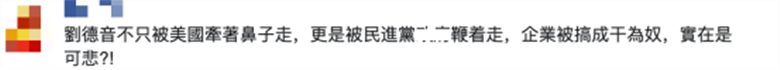 還有島內網民評論稱,“劉德音不只被美國牽著鼻子走,更是被民進黨當局鞭著走,企業被搞成甘為奴,實在是可悲!”