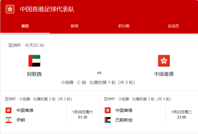 中國香港足球代表隊參賽時間 主教練安達臣稱,友賽沙特令球員找到對阿聯酋的感覺,加上早前2:1贏國足提升球員信心。他也特別提醒中場陳俊樂逼搶要快、轉守為攻要快,用快速節奏打亂對手:“球員傳送要快及準,下決定要快。熱身賽時沙特有段時間都攻不入港隊,希望今仗對阿聯酋都做到。” 安達臣大讚卡塔爾的訓練設施和球場十分良好。3名入籍兵艾里奧、祖連奴及謝家強早前未有隨大軍訓練,安達臣日前亦稱或會考慮賽前更換球員。在昨日的賽前記者會上有記者問及更換球員一事進展時,安達臣回應指仍在考慮當中:“現在距離更換球員的限期還有一整天時間,有時間去讓我找到最好的解決方法。” 港足首仗的對手阿聯酋,世界排名第64,安達臣指對方是一支很強的球隊:“他們有好球員,有經驗老到的球員,更不乏星級球員,對港隊來說是一場艱難的比賽。”