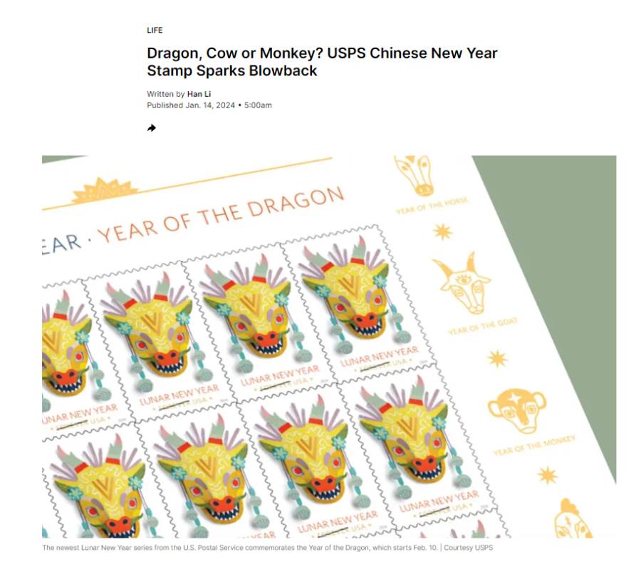 美國龍年郵票在華人社區“一石激起千層浪”分享到: