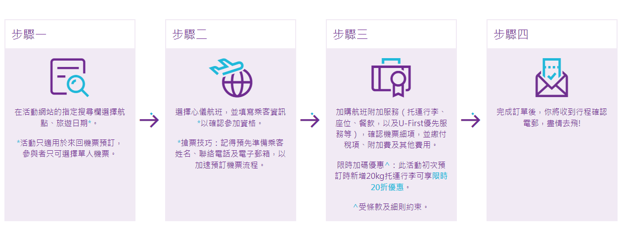 申請步驟。 有關機票由香港國際機場贊助,不包括相關稅金、附加費及其他收費。旅客須自行承擔一切相關費用。機票以先到先得的形式送出並以系統紀錄為準。每位參加者最多可贏得一張來回機票。 要留意的是,若在香港快運舉辦的其他地區機票禮遇活動中,成功贏取或預訂機票,該批參加者則不符合參加資格。 (完) 【編輯:孟宜君】