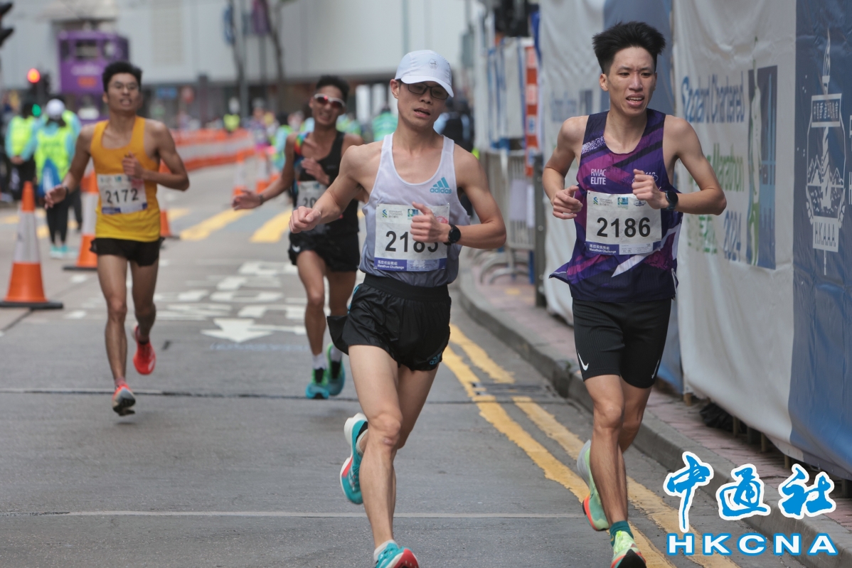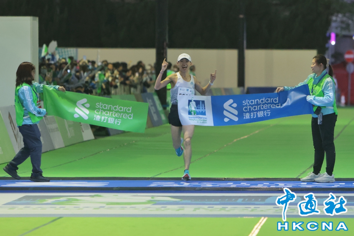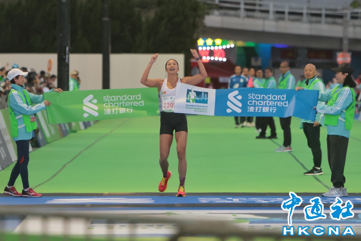 (香港中通社記者 謝光磊 攝) 至今早10時許,部分半馬及10公里賽事已經完成。率先決出冠軍的10公里賽,男子組由19歲北京跑手陳雨繁,以30分58秒的成績奪得冠軍;女子組就由去年半馬季軍香港跑手曾曉彤以36分46秒奪冠,並打破個人最佳成績。