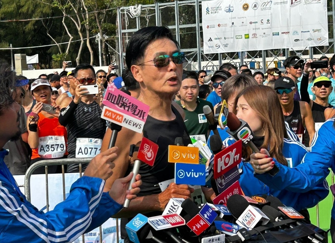 周潤發。香港電台圖片 衝線後,周潤發向現場的支持者、記者送上飛吻,並與其他參賽者自拍。他賽後接受傳媒訪問時表示,起跑時跌了手提電話,幸好已經拾回,又笑言沿途有不少參賽者幫忙開路,很感激他們。而跑到西隧路段時,因為有斜路頗為辛苦,不過他認為跑“半馬”需要有耐性,不能心急。 他又指出,今天天氣及氣氛都很好,亦看到有不少長者參加比賽,感到高興,希望能夠鼓勵更多人做運動。對於今次成績,他坦言不太滿意,指原定目標是兩小時內完成賽事,可惜不達標,強調明年會繼續努力備賽,希望奪更好成績。 近年來周潤發熱衷跑步,今次是他第二次參加半馬比賽。他曾在去年2月的渣打香港馬拉松中,以大會時間1小時3分57秒完成10公里,至於個人晶片時間為58分58秒。另外,周潤發曾於去年11月參加首屆港珠澳大橋香港段半程馬拉松賽。 周潤發曾說過,60歲之後自己人生的第一部分已經完結,從前的故事是電影,現在是馬拉松,“人到了這個年紀,找到自己喜歡的事情,對身體又好,那就堅持跑下去了。”(完) 【編輯:孟宜君】