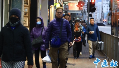 香港新聞網1月23日電 受強烈冬季季候風及廣闊雲雨帶影響,香港今天(23日)清晨天氣嚴寒,市區氣溫下降至6℃左右,新界再低兩三度,其中打鼓嶺和荃灣可觀只有4℃。大帽山更一度錄得零下2.2℃!