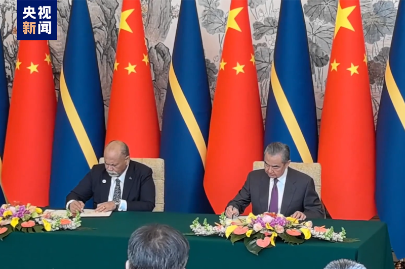 香港新聞網1月24日電 據中國外交部網站消息,1月24日,中共中央政治局委員、外交部長王毅在北京同瑙魯外長安格明舉行會談並簽署《中華人民共和國和瑙魯共和國關於恢復外交關係的聯合公報》。即日起,兩國恢復大使級外交關係。(完)