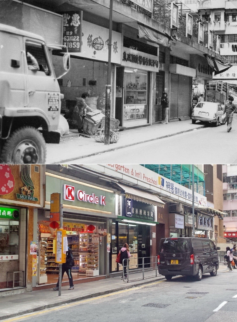 七姊妹道近書局街今昔對比。(圖片:昔日香港)