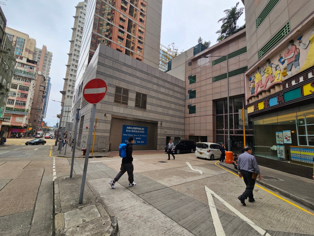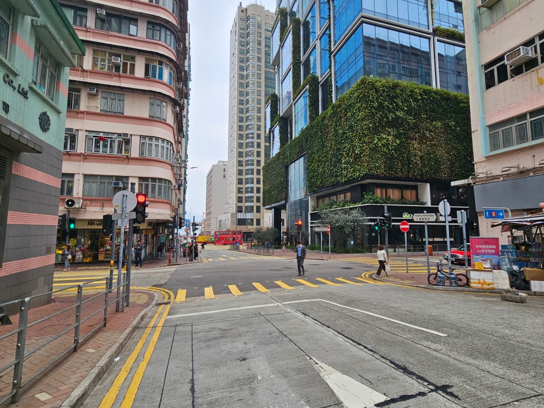 七姊妹道中間一段被港運城分割。右側為港運城。(香港中通社記者 黃璇攝)