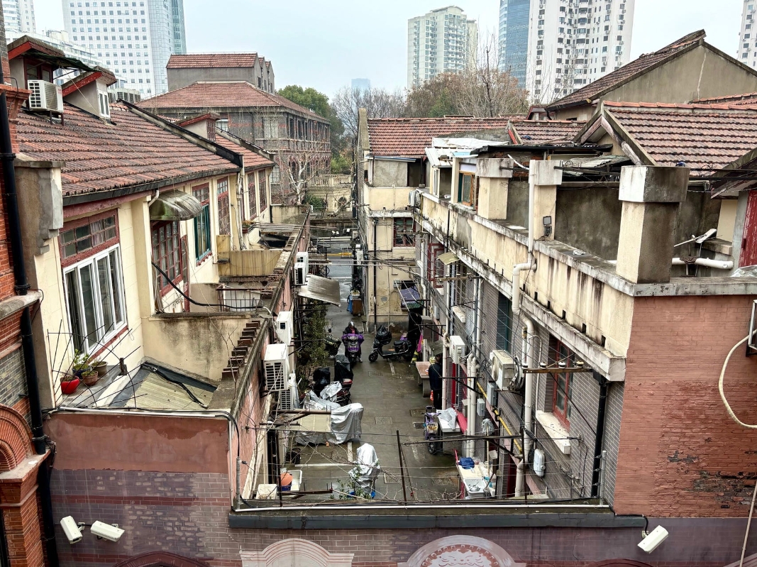 從樓上陽台向外看,周邊里弄生活氣息濃郁。(香港中通社記者 黃璇攝)