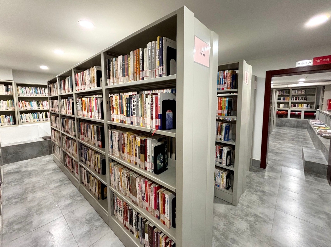社區活動中心內的圖書館。(香港中通社記者 黃璇攝) 沿紅木台階向上,北側房間改成了一間大劇場,平常會舉辦評彈說書、歌舞表演等,其他小房間改建成了排練廳。南側的大陽台,是整棟建築中最吸引遊客的地方。同行者紛紛在此打卡。朝下望去,石庫門里弄人家的生活熙熙攘攘。