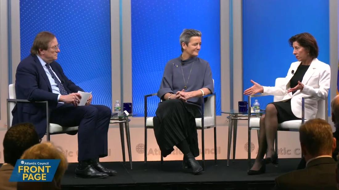 圖為美國商務部長吉娜·雷蒙多 來源:視頻截圖 根據大西洋理事會發佈的會議實錄,一同參與討論的還有歐盟競爭事務專員專員瑪格麗特·維斯塔格(Margrethe Vestager),活動開場主要圍繞美國—歐盟貿易和技術委員會會議(TTC)取得成果展開,這一議程被讚賞“重振了美歐關係”。 雷蒙多表示,在包括人工智能等許多方面,美歐的利益是一致的。她尤其提到,特別是在面對中國時。 她說,對中國、歐洲和美國而言,合作符合所有人的自身利益,美歐都與中國有著巨大的貿易關係,向中國出口商品也為兩國創造了就業機會。 話鋒一轉,雷蒙多又煞有其事稱因此美歐也同時存在著國家安全問題,他們還必須關注中國在電動汽車領域發展勢頭強勁的情況。她指責中國製造的電動汽車收集了司機及車輛狀況等大量信息,對美國構成“國家安全風險”。 在談到人工智能標準制定時,雷蒙多也不忘再扯一嘴中國。她聲稱,美歐在聯合監管合作上必須搶佔先機,因為“如果美國和歐盟不出現,中國就會出現”。