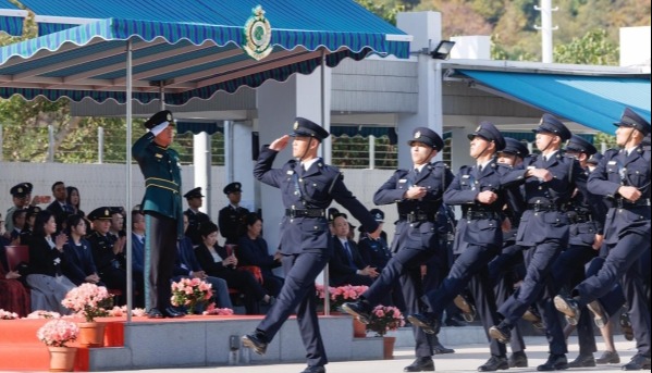 香港新聞網2月3日電 香港警察學院舉行結業會操,新一批見習督察及學警畢業,投入警務工作。