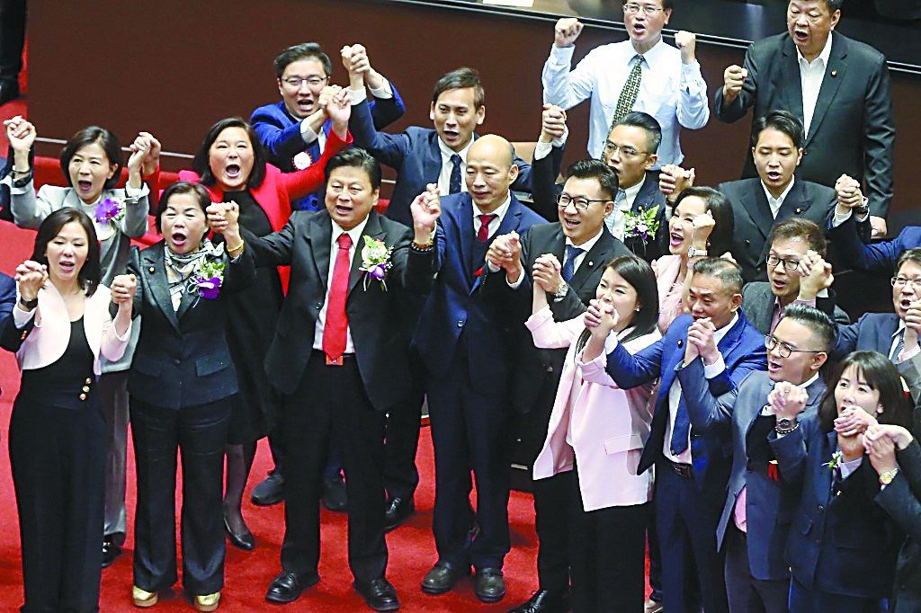 2月1日,韓國瑜與江啟臣當選台“立法院正副院長”,國民黨籍“立委”高呼口號慶祝。台灣中時新聞網資料圖 韓國瑜收穫近七成滿意度 韓國瑜2月1日當選“立法院長”後,島內輿論多數對其持肯定態度。 台灣雅虎奇摩新聞網針對此次“立法院正副院長”選舉結果滿意度發起網絡投票,截至2月2日下午約兩萬名網友參與投票,其中58.5%的網友“非常滿意”,“還算滿意”則占10.6%。也就是說,韓的支持率達七成。 據台灣議題研究中心(TPOC)觀察,韓國瑜的網絡好感度在1月26日時為0.64,總聲量為9094則,然而到了2月1日“立法院長”選舉當天,其總聲量呈現炸裂性增長,衝上6.8萬則,好感度更增長到1.03。 TPOC稱,從網絡數據分析結果可以發現,當前唯一強烈不想讓韓國瑜當“立法院長”的,就只有民進黨。網友紛紛留言表示“快把這過去8年的黑箱、不敢見人的資料全部翻出來,不要手下留情”。 台灣媒體分析認為,韓國瑜拿下“立法院”有三大意義:第一顯示藍軍整體相當團結,牽制民進黨的意願非常高;第二,民眾黨8席“立委”投給自家人,第二輪投票選擇棄權,等於助攻韓國瑜;第三,韓基本確定成為藍營未來4年的核心人物。 韓國瑜當選當晚就帶著“副院長”江啟臣及國民黨黨團總召集人傅昆萁、書記長洪孟楷拜會前“立法院長”王金平。在王金平等多方推薦下,韓國瑜決定邀請周萬來出任“立法院”秘書長。 據台灣《聯合報》2月3日報道,針對秘書長人選,韓國瑜提出如下條件:要能超越黨派,也要能够調和、處理院務,還要幫助每個“立委”問政的後勤工作。周萬來獲得韓國瑜青睞的原因,除了超越黨派外,更重要的是他被朝野公認為“立法院活字典”。他今年72歲,公職生涯大多在“立法院”任職,歷經議事組科長及主任、議事處處長、顧問及副秘書長等職務,對議事運作及相關法規相當嫻熟。 洪孟楷3日在臉書稱,專業重於一切,韓國瑜請周萬來擔任“立法院”秘書長是“最合適的精彩起手式”。“立委”王鴻薇稱,周萬來沒有任何政治色彩,在“立法院”起到輔佐功能,這樣的角色對韓國瑜有加分作用。 台灣媒體人黃揚明認為,能請出周萬來擔任秘書長,韓國瑜走了正確的第一步。他提醒韓“莫忘‘立法院’媒體多”,以後每天都會有媒體一早守在“院長室”門口,看他幾點上班,“若稍微鬆懈,‘黑韓’(抹黑韓國瑜)產業鏈隨時會死灰複燃”。 果然,韓國瑜2日未進“立法院”辦公,立即引發綠營的批評。 民進黨“立委”林楚茵稱,韓國瑜上班首日就沒進“立法院”,“不想上班的人總有100個理由”。洪孟楷則回擊道,綠營無聊、沒事找事,韓國瑜在1日宣誓就職後,2日就以“院長”身份正式發函給三個黨團,5日下午就要召開朝野協商會議。倘若民進黨只想玩政治,甚至拖垮議事程序,民眾黨跟國民黨沒有興趣奉陪。 台資深媒體人趙少康3日說,黑韓的那些人并沒有消散,現在又集中起來盯著他,所以韓必須很謹慎、很小心,任何事情都會被放大十倍、百倍。 綠白就“電話門事件”互批 韓國瑜當選後,綠白陣營爆出“密室協商”的傳聞。 據台媒報道,民進黨雖嚴厲批評民眾黨“保送”韓國瑜,但島內政治及媒體圈卻盛傳雙方在選前悄悄溝通人選。 綠營放話稱,投票前一晚,民眾黨主席柯文哲致電民進黨高層,希望他們將“立法院長”的票投給民眾黨的黃珊珊,“副院長”他們會全力支持民進黨的蔡其昌。民進黨發言人吳崢言之鑿鑿地稱,是柯文哲主動打電話給綠營一名醫界大佬,委託其居中協調。 對於民進黨的爆料,柯文哲“氣到拍桌子”。他反駁稱,當時民進黨各路人馬都在找他,包括上文所說的醫界大佬,他當然要回電,因此并非他主動聯繫對方。他揚言,“大家如果都要耍陰的,就法院見”。 台灣《中國時報》3日稱,就在外界都在好奇這名醫界大佬是誰之際,台灣醫師陳永興通過發表一封公開信主動站了出來。 陳永興透露,自己先後拜訪過民眾黨“立委”黃國昌和民進黨主席賴清德,提出在“立法院”尋求綠白合作的可能性。賴清德表示,不排除和在野黨合作推動各種改革。於是,陳永興到柯文哲的老師、台大醫學院榮譽教授張金堅的基金會拜訪,請他向柯文哲轉達賴清德的意思。1月31日傍晚,他接到柯文哲來電,提出“若民進黨能够在第一輪投票支持黃珊珊,民眾黨願意支持民進黨人選擔任‘副院長’”。後因民進黨堅持只支持游錫堃選“立法院長”,雙方沒有達成共識而作罷。 台媒認為,陳永興的爆料無異於打臉柯文哲,證實是他主動找民進黨的。 3日,民眾黨不分區“立委”黃國昌在臉書痛批民進黨顛倒是非,稱明明是他們各路人馬跑來要求見柯文哲,尋求合作,結果在2月1日“立法院長”選舉後,民進黨就利用其禦用傳聲筒丟出一些莫名其妙的抹黑新聞,進行“抹黑一條龍”的操作。 柯文哲辦公室發言人陳智菡3日稱,陳永興的公開信有兩處誤解:一是略過有中間人到柯文哲辦公室,所以柯才回電;二是陳永興明明傳信息給柯的老師張金堅,還打電話給張說要找柯文哲,這一段也被略過,“這會造成很多人誤解”。黃珊珊怒批民進黨自己無法承擔“立法院正副院長”敗選的責任,所以推給其他人,民進黨黨團總召集人柯建銘嘲笑民眾黨“立委”是沒用的8席,“事實證明,這場戰役中,民進黨才是沒用的51席”。 香港中評社分析稱,“電話門事件”在民進黨沒拿下“立法院正副院長