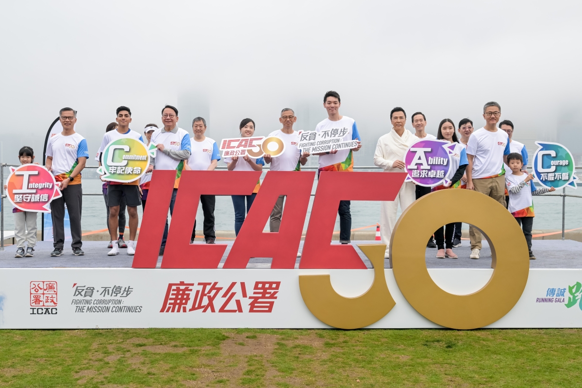 陳國基說:“我深信廉署憑着半世紀以來的豐富經驗,一定能夠繼往開來,肅貪倡廉,為“一國兩制”實踐行穩致遠貢獻力量,持續營造公平公正的環境,讓市民安居樂業、讓經濟健康發展。” 在“傳誠跑”起跑前,一眾主禮嘉賓將代表廉署人員核心價值的標記交予年青人及小朋友,象徵將反貪使命傳承下一代。 除廉政專員及政務司司長外,為“傳誠跑”活動主禮及鳴槍的嘉賓還包括著名動作巨星甄子丹、警務處處長蕭澤頤、副廉政專員兼執行處首長丘樹春、審查貪污舉報諮詢委員會主席陳智思、防止貪污諮詢委員會主席黃天祐博士、社區關係市民諮詢委員會主席何順文教授、副行政署長陳圳德,以及其他廉署首長級人員。 “廉政公署50周年傳誠跑”在西九文化區東面海濱草坪舉行,是廉署一連串“反貪‧不停步”社區參與活動其中一個重點項目。“傳誠跑”設五公里跑步競賽及一公里親子跑,共吸引約1000名來自不同界別及年齡的市民參加。廉署在會場又舉辦多項互動親子活動,包括親子遊戲、廉署卡通人物“小啡豆”見面會,以及特色“打卡”裝置等,向下一代宣揚廉潔信息。 廉署於1974年2月15日成立,為慶祝公署成立50周年,廉署首次舉辦三項結合跑步及廉政的活動,希望市民身體力行支持廉署的反貪工作。除今日的“傳誠跑”,廉署早前已分別舉行“起動跑”及“線上行”,以配合“反貪.不停步”的主題。 當中於上月推出的“線上行”活動,超過2000名市民報名參加,他們一個月內已累積步行或跑步約90000公里,相等於圍繞地球超過兩周。 (完) 【編輯:陈卓仪】