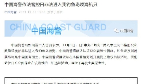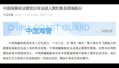 中國海警巡視釣魚島。新華社資料圖 日前,據《日本時報》等日媒報道稱,日本政府表示“無法接受”中方的警告。過去,中國軍艦曾敦促日本海上自衛隊飛機離開釣魚島附近空域。一名日本政府官員宣稱,這是中國海警船第一次在“日本領空”向自衛隊的飛機發出此類警告。 日本共同社則渲染稱,此前,中國海警船經常在“尖閣諸島”(即中國釣魚島及其附屬島嶼)附近巡航,還曾“尾隨”日本船隻。“如果中國對領空的主權要求常態化,預計日中之間的對立將進一步激化。” 中國外交部多次表明,釣魚島及其附屬島嶼是中國的固有領土。然而,一段時間以來,日方不僅頻借炒作釣魚島問題挑釁中國,更有多艘船隻堂而皇之地非法進入中國釣魚島領海。 中國海警局新聞發言人甘羽表示,1月27日,日“鶴丸”號漁船和數艘巡視船非法進入中國釣魚島領海,中國海警艦艇依法對其采取必要管控措施并警告驅離。甘羽稱,釣魚島及其附屬島嶼是中國固有領土,中國海警艦艇依法在本國管轄海域開展海上維權執法活動。我們敦促日方立即停止在該海域的一切違法活動,確保不再發生類似事件。 據日媒報道,除派船隻、飛機闖入釣魚島附近海域和空域,日媒還將中國海警船進入釣魚島領海進行維權巡航、捍衛國家主權和海洋權益的例行性舉措說成“闖入領海”,并進行詳細記錄,以渲染“中國威脅”。 此前,日本共同社報道稱,中國海警船2023年在釣魚島附近海域巡航合計達352天,創2012年以來的新高。該媒體還誇張地宣稱,中國計劃在2024年每天派船到釣魚島附近巡航,并在必要時檢查日本漁船等。但據其自己的報道卻顯示:4艘中國海警船隻在1月11日駛入釣魚島周邊海域,為今年首次。所謂“每天派船巡航”的謊言不攻自破。 其實,對於釣魚島問題,中國外交部已經多次表明了態度。對於日本媒體的此番炒作,有中國專家分析表示,釣魚島及其附屬島嶼自古以來就是中國的固有領土,這有著堅實的歷史和法理依據。日本政府罔顧歷史事實,費盡心思地將其自身包裝成“受害者”,破壞國際社會在釣魚島主權問題上的固有認知。不僅如此,在日本政府編纂的教科書中,無視和中國、韓國以及俄羅斯等國存在領土爭端,宣稱對爭議領土“擁有主權”,利用不實信息混淆視聽,試圖誤導輿論。日本在“輿論戰”上可謂花招頻出,不擇手段。(完) 【編輯:豐悅】