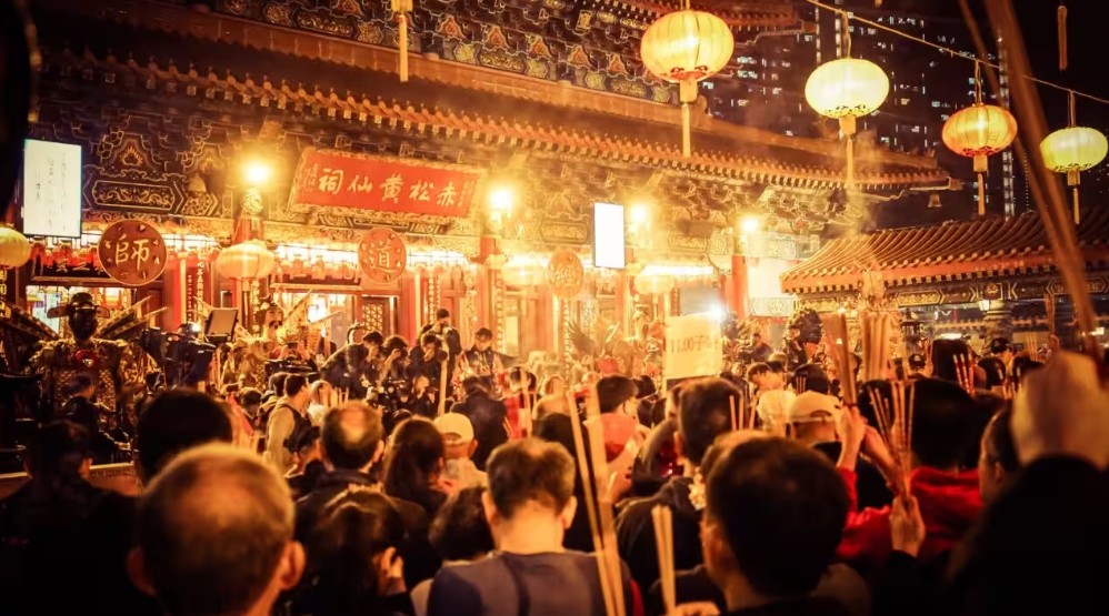 每年農曆年除夕夜,嗇色園黃大仙祠內人頭湧湧,香火最為鼎盛。(圖片:嗇色園黃大仙祠) 龍年將至,嗇色園黃大仙祠將於年三十(2月9日)晚上9時開放予善信入祠內第一參神平台等候上“頭炷香”,並通宵開放至年初一晚上9時,農曆新年期間亦延長開放時間,並推出“接財神”及元宵晚會等活動。 大年初一:國泰新春花車巡遊