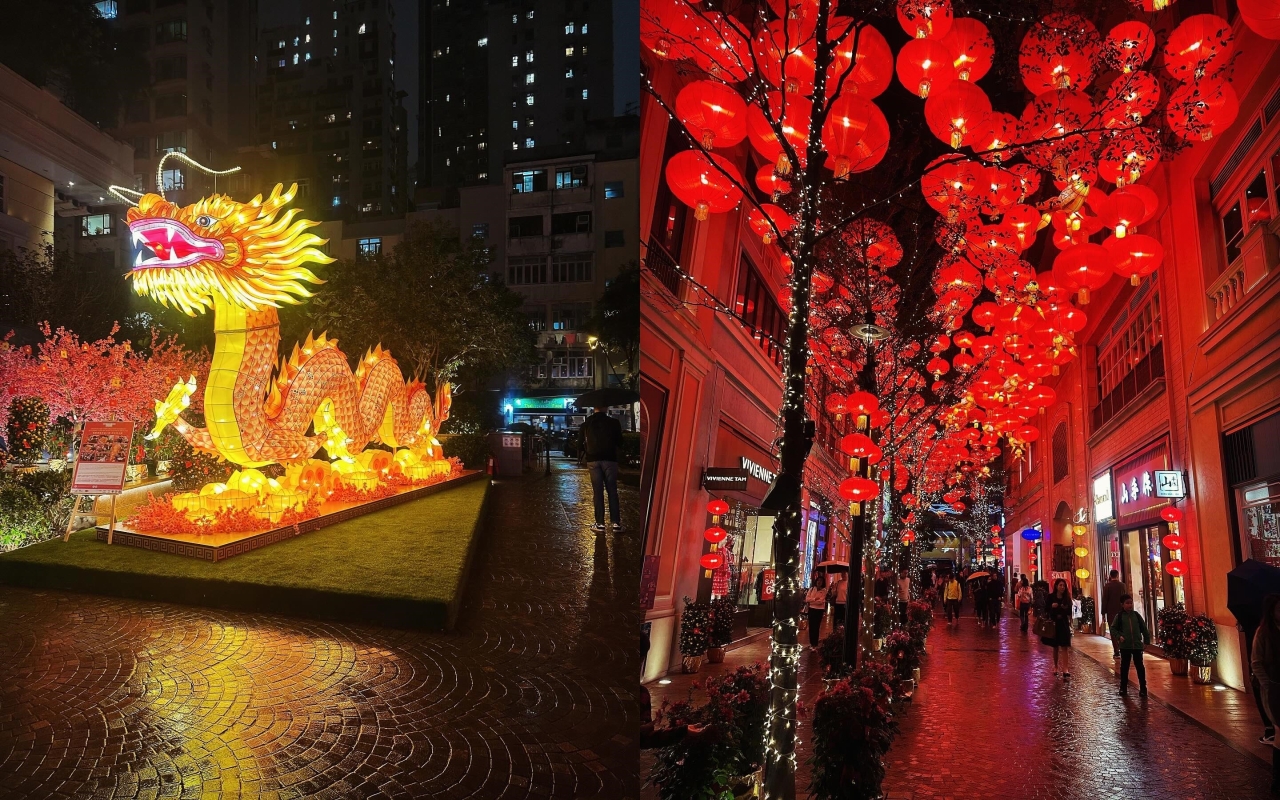 利東街200米長的林蔭大道上空懸掛800個大紅燈籠。(香港中通社記者 黃璇攝) 由即日起至3月10日,灣仔利東街新年打卡燈籠佈置再次回歸。200米長的林蔭大道上空懸掛800個大紅燈籠,金光閃閃的金魚燈籠穿梭在如意燈籠之中,塑造出濃厚的新年氣氛。此外,利東街新年打卡位還有位於中庭長達8米的金光巨龍裝置,寓意行運一條龍。利東街新春燈籠每日下午5時起亮燈。別錯過利東街新春巡遊文化匯演,年初一花車巡遊2024兩隊國際及本地巡遊隊伍在利東街中庭表演,包括西班牙歌舞勁旅Golden Dream及德國八人踩高蹺團隊Universe of Lights;2月10日及11日每日各有4場醒獅表演。 置地廣場“時光亭”和“福臨廊”