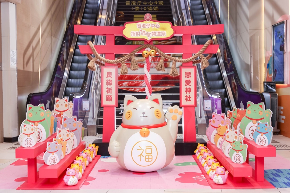 香港仔中心“招財喵喵開運祭”。(圖片:主辦方提供) 香港仔中心舉辦“扣財喵喵開運祭”,化身成為日本愛知縣“招財貓的故鄉”,打造4大招財貓祈願打卡位,當中最為吸晴的是4米闊全港最大戶外“開運招財貓”,另外還有必影“喵喵戀愛神社”、“幸福招福貓電車”及“貓和風祭典”陪伴大家共度新春。香港仔中心更會舉辦“手繪擴香石招財貓工作坊”,及“福財雙收”雙重消費禮遇,讓大家今個新春“喵”來運到。 奧海城室內年宵花市 + 美食攤位