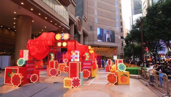 新春綵燈展主題為“龍躍花燈・喜迎新歲”,於尖沙咀舉行。(香港中通社記者 黃璇攝) 元宵佳節賞花燈是必備的新年好去處,康文署元宵綵燈會2024分別在尖沙咀文化中心、香港單車館公園、天水圍公園及銀座廣場舉行。大家可以欣賞香港紮作師傅陳耀華製作的花燈作品及民族歌舞表演,參加燈謎競猜及工作坊,感受一年一度的香港綵燈會氣氛。 新春綵燈展主題為“龍躍花燈・喜迎新歲”,由即日至2月25日期間,每日下午6時至晚上11時展示花燈作品,由非物質文化遺產辦事處與紮作師傅陳耀華合製,作品以象徵春天生機的青龍為設計元素,舞龍在宮燈和年花之間穿梭,寄寓龍年欣欣向榮。元宵綵燈會則由2月20至25日期間舉行,綵燈會主題分別有尖沙咀綵燈會的“迎春接福・祥龍獻瑞”、天水圍公園及銀座廣場的“‘龍’情蜜意慶新歲”,以及香港單車館公園的“童趣夢幻樂園”。今年綵燈會將同場加映湖北省演藝集團的大型民族歌舞、舞麒麟演出及自助猜燈謎等活動。元宵綵燈會免費入場,讓大家一同歡度元宵。 新年商場佈置 利東街“福魚燈海.金龍獻歲”