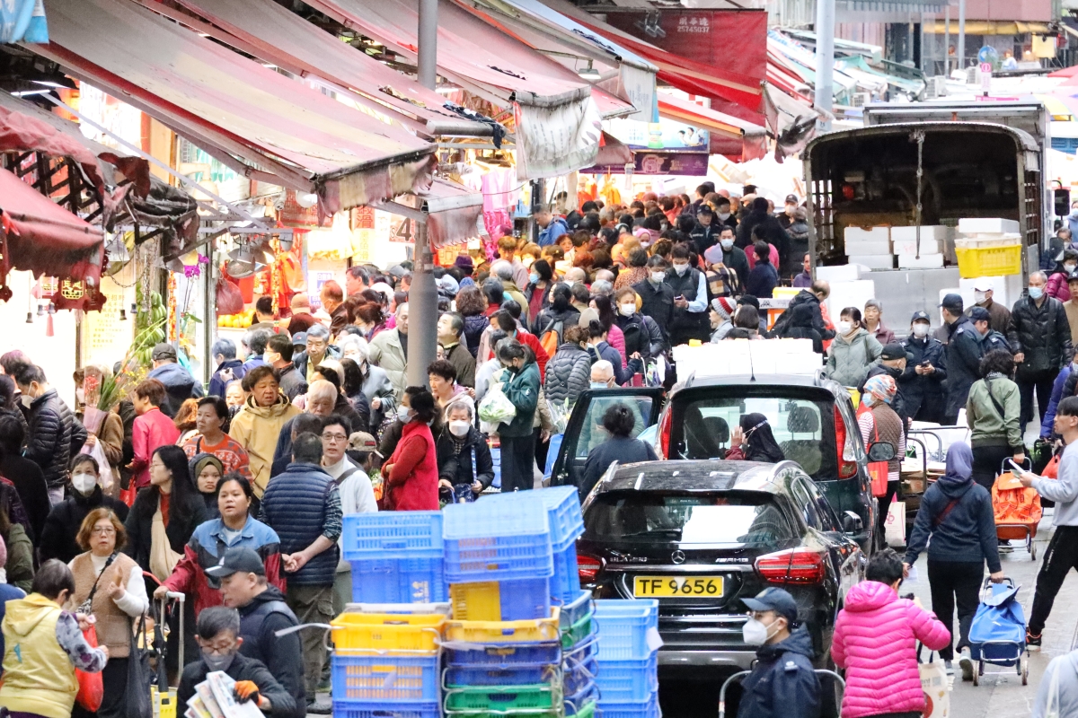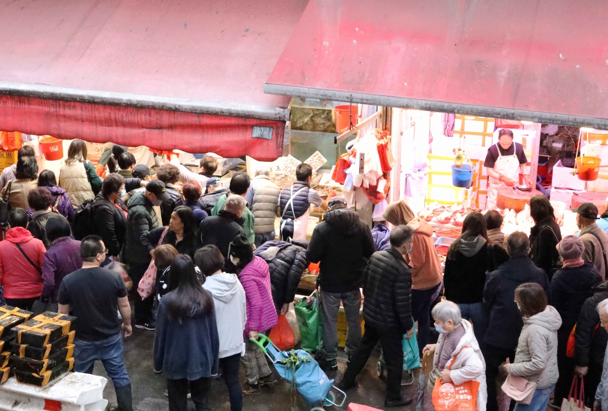 街市人頭攢動,擠滿了為年夜飯作準備的市民