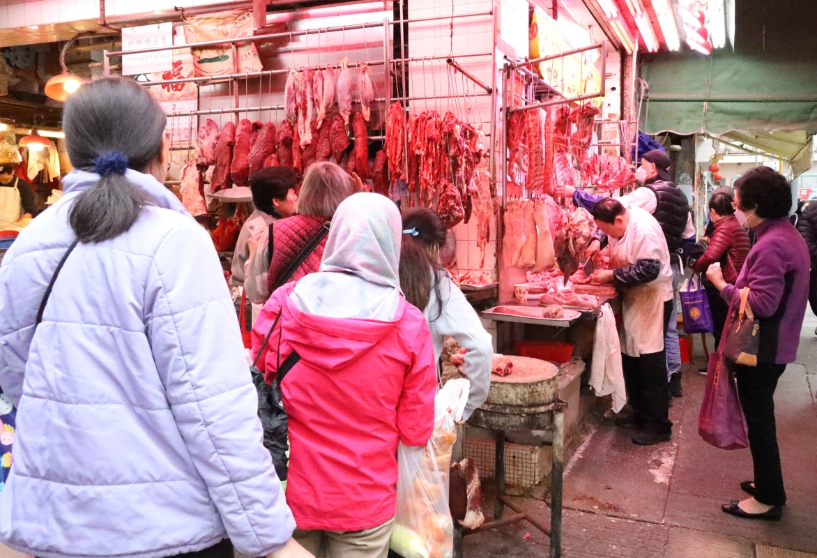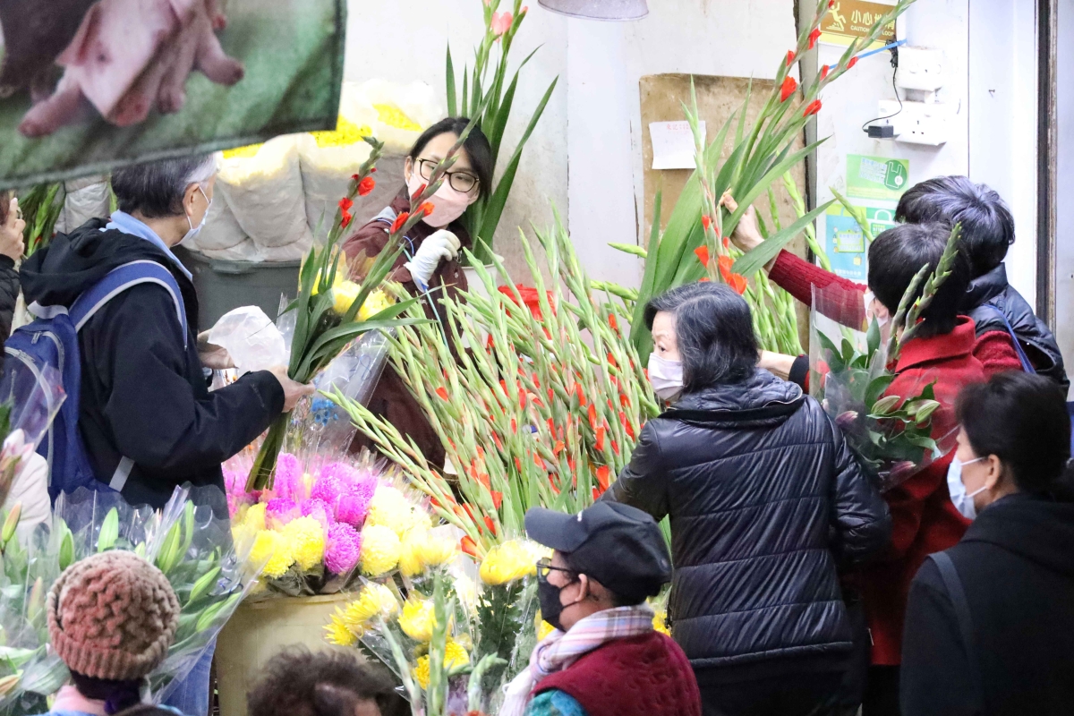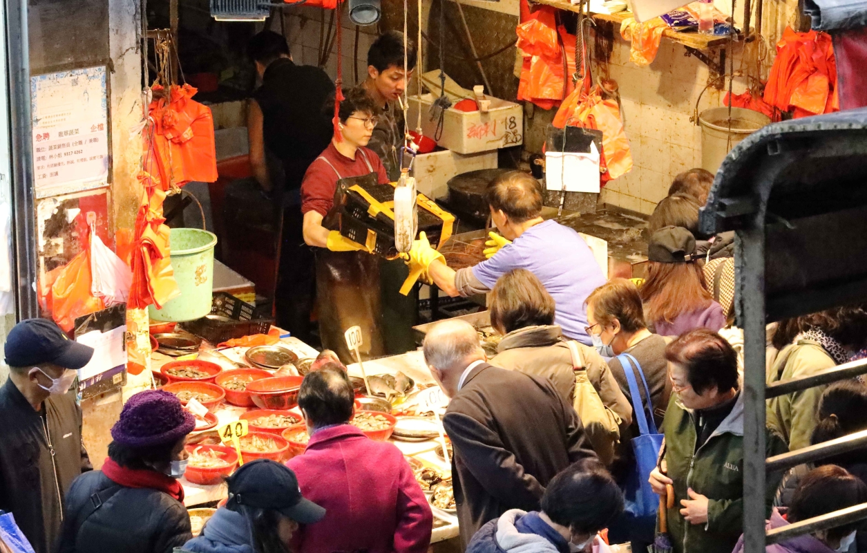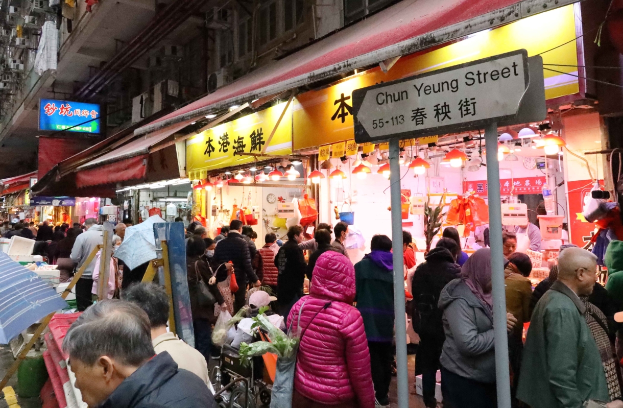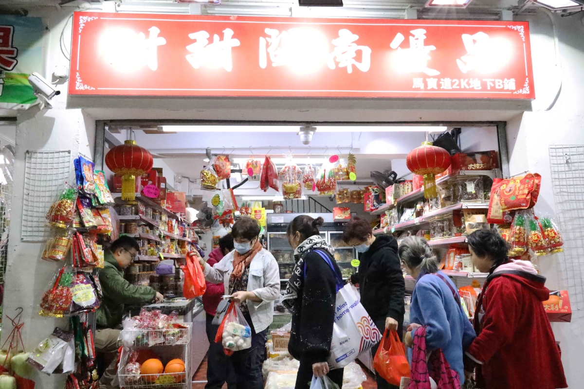 除夕當天,民眾在北角春秧街選購食材,準備歡度農曆新年