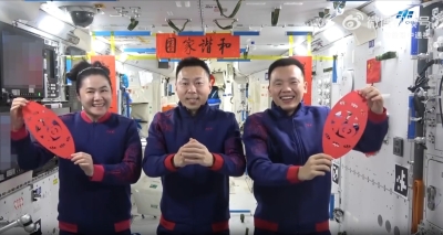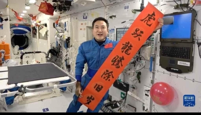 香港中通社2月9日電 9日適逢中國農曆除夕,正在太空“出差”的神舟十七號載人飛船航天員乘組在中國空間站錄製視頻,給國人拜年。