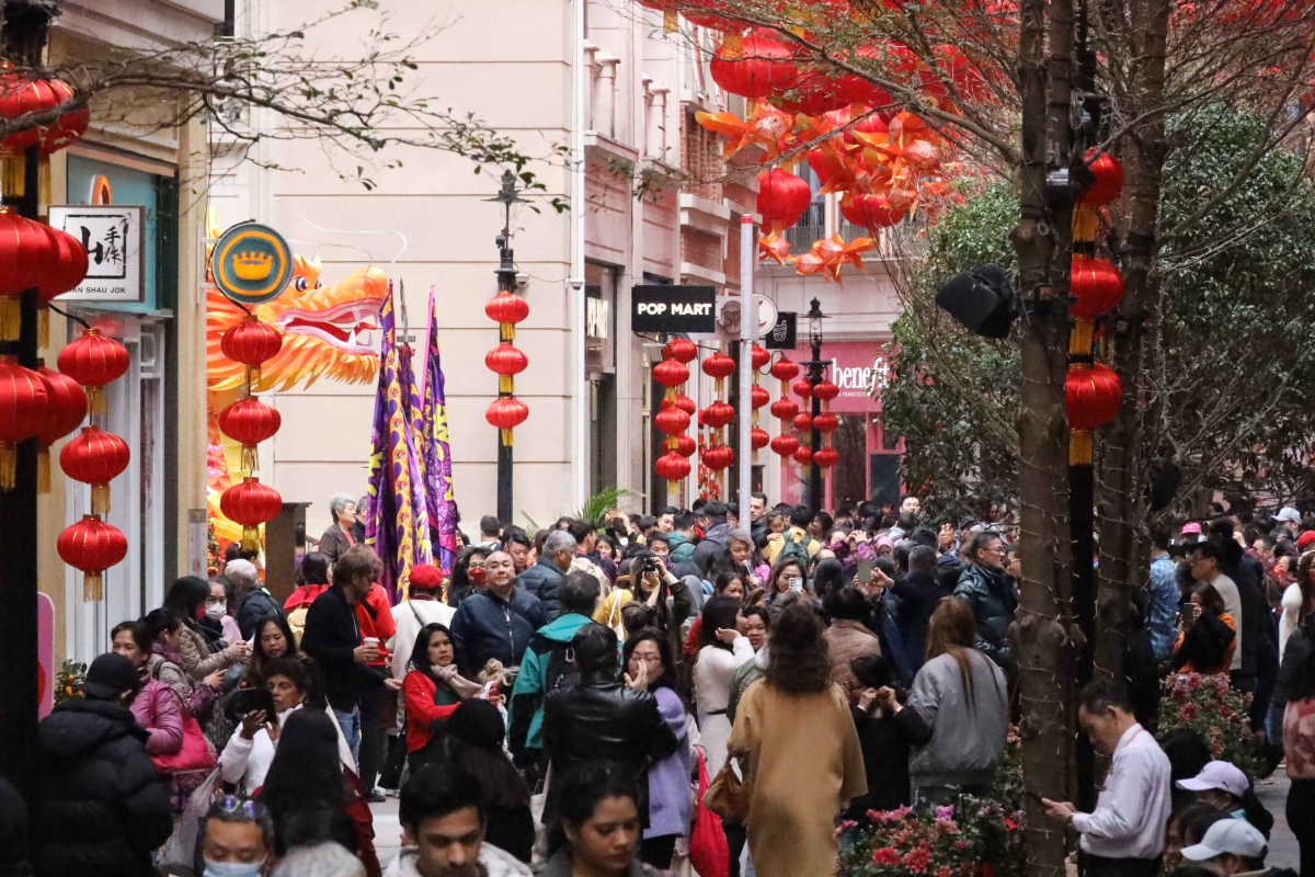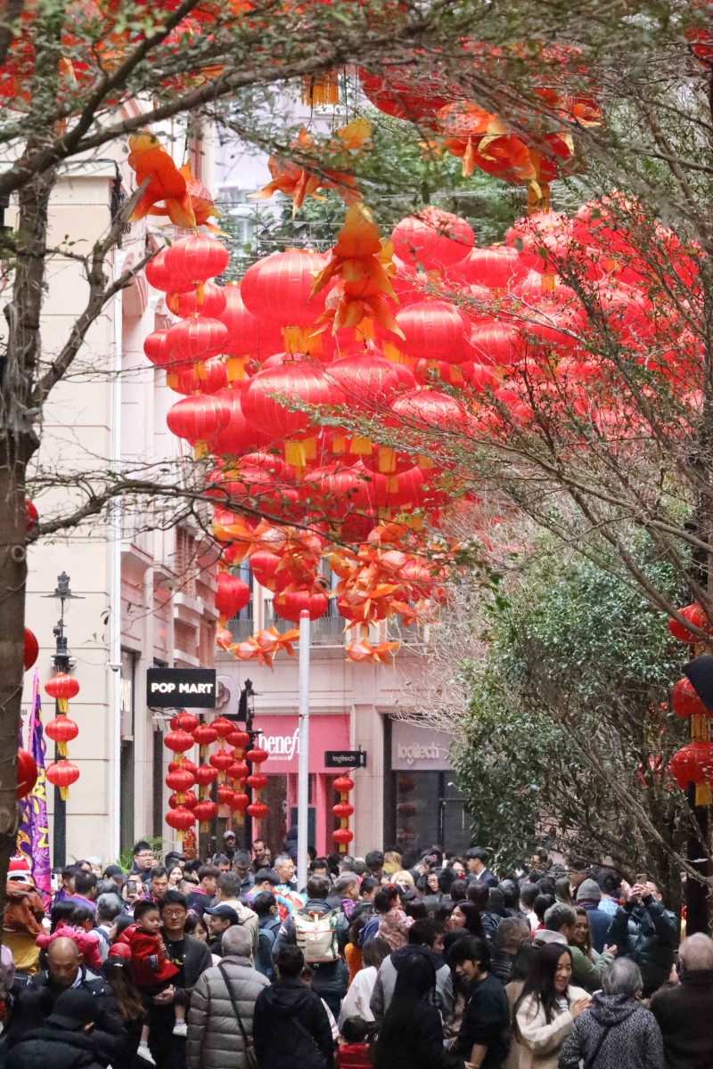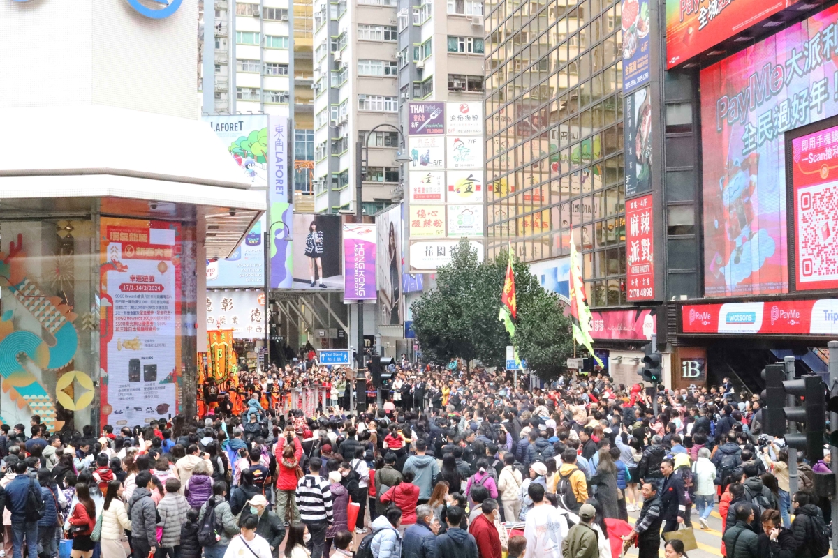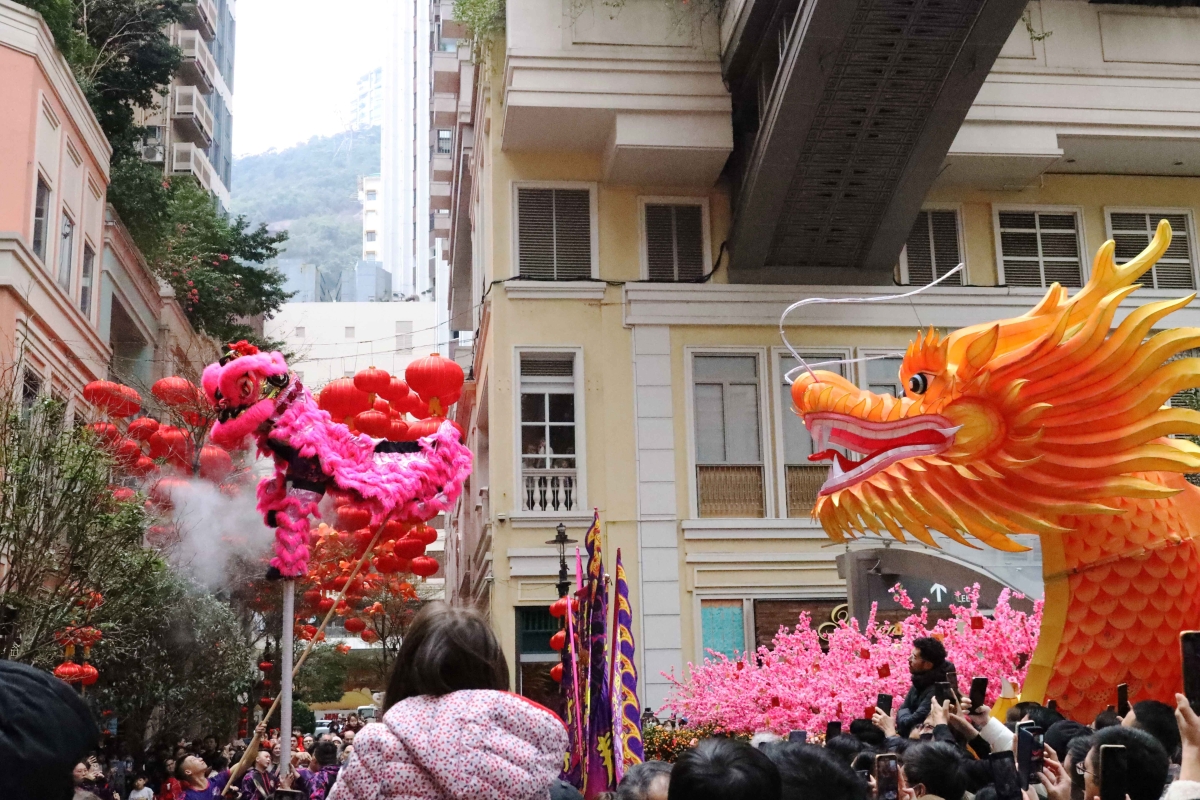 大批市民和遊客在灣仔利東街感受龍年氣氛