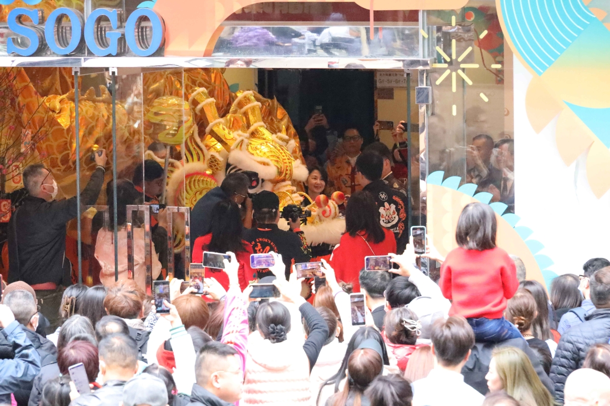銅鑼灣有大型百貨商店舉行金龍賀歲開市迎賓,吸引大批市民圍觀