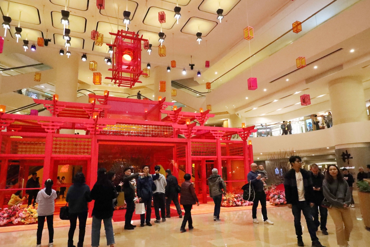 大型百貨商店舉行金龍賀歲開市迎賓,吸引大批市民圍觀