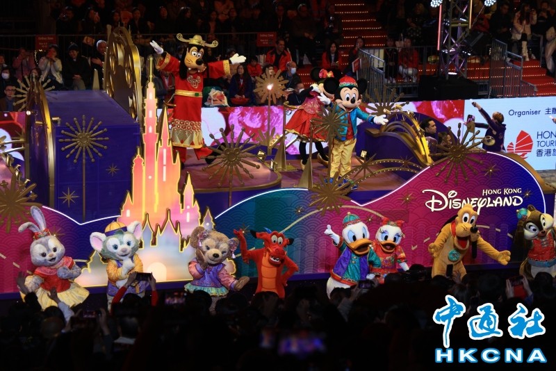 香港中通社記者 許其皓攝 花車隊伍猶如一條喜氣洋洋的“車龍”,盛載連連好運,從香港文化中心廣場出發,沿廣東道、海防道及彌敦道前行。29隊來自香港、內地、世界各地的表演隊伍亦分批出場,施展渾身解數演出。