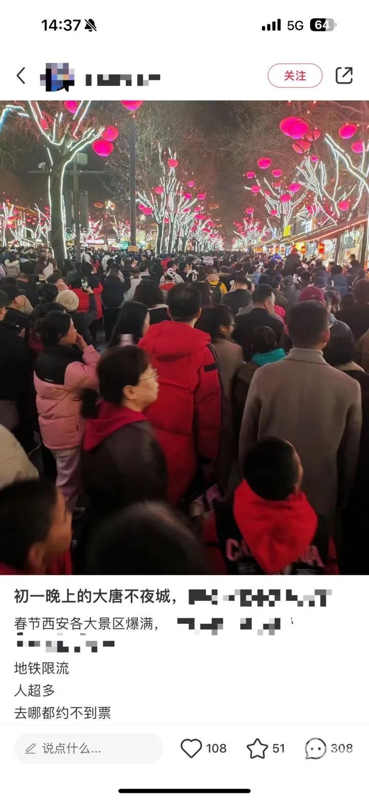 香港新聞網2月12日電 大年初二,內地春節的喜慶氛圍正濃,游客們陸續出發,開啟春節旅行。 與往年相比,2024年春節假期更長,“先回家、再出游”成今年不少人的過節方式。攜程數據顯示,大年初一平台上旅游訂單同比增長102%,門票訂單同比增長超300%,國內接送機訂單同比增長75%,均大幅超過2019年同期水平。 不少旅客選擇返鄉+旅游“1+1”模式度過春節。去哪兒相關負責人表示:“大部分游客在結束探親後,於初二出門看看”。去哪兒數據顯示,2024年春節假期中無明顯出行低穀,大年初二至初四出行的機票預訂量較2023年增長60%,其中大年初二出行量最高。 一大波人山人海又來了! 今年春節,不少人選擇旅游過年,各地“人从众”再現。